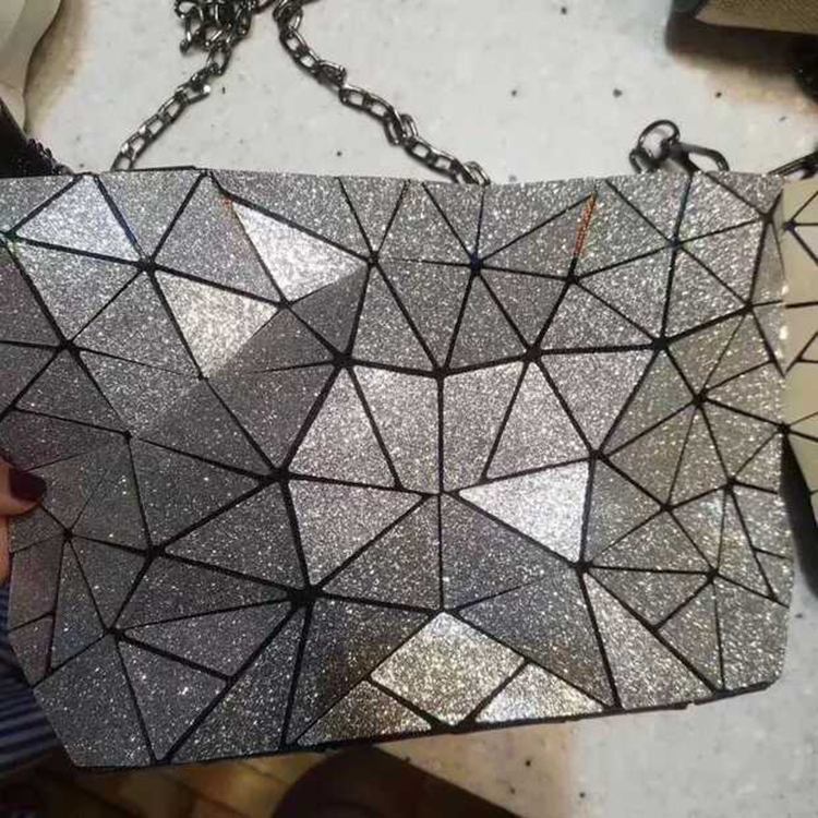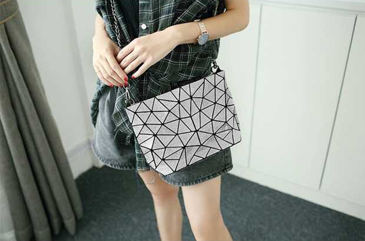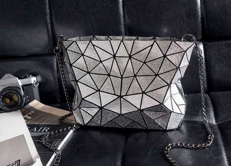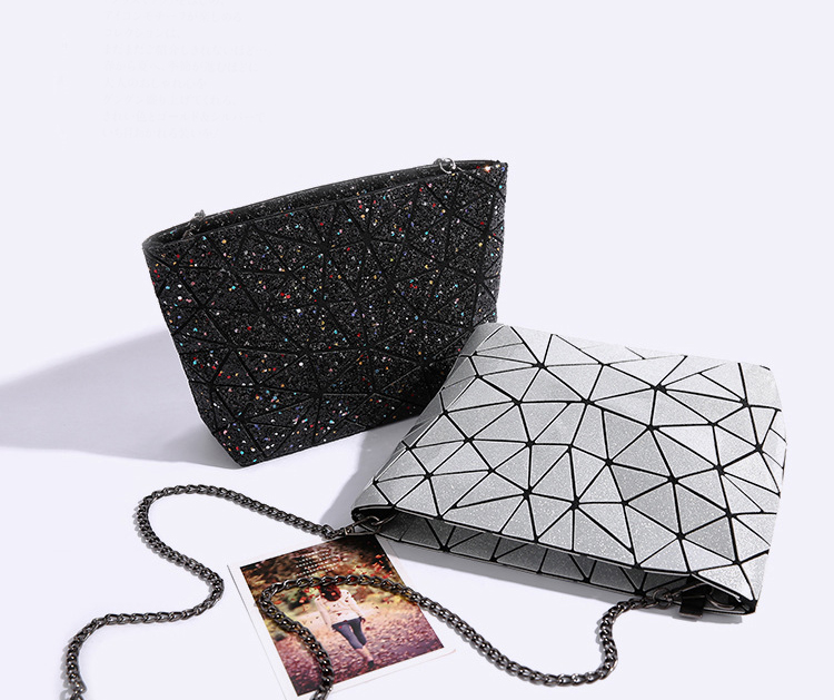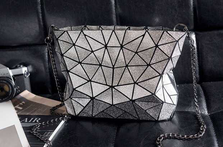 PU Leather Geometric Rhombic Metal Chain Casual Crossbody Messenger Bag Purse