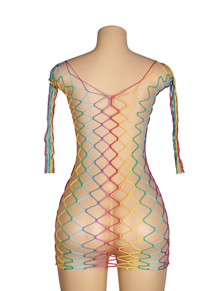Rainbow Colorful Long Sleeve Fishnet Bodystocking