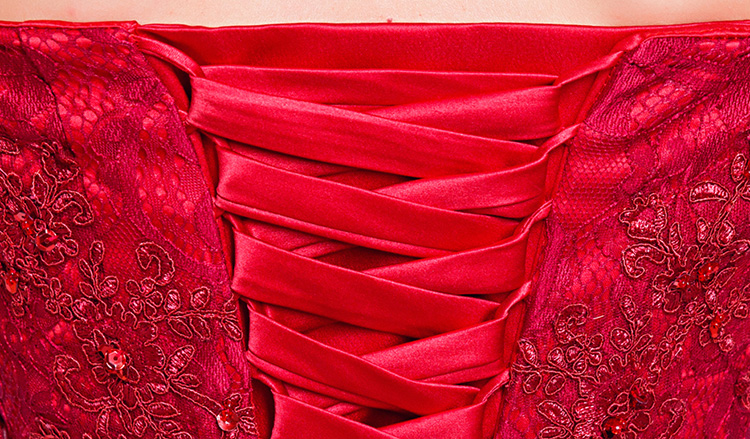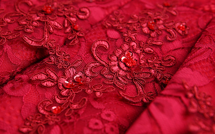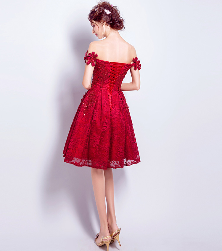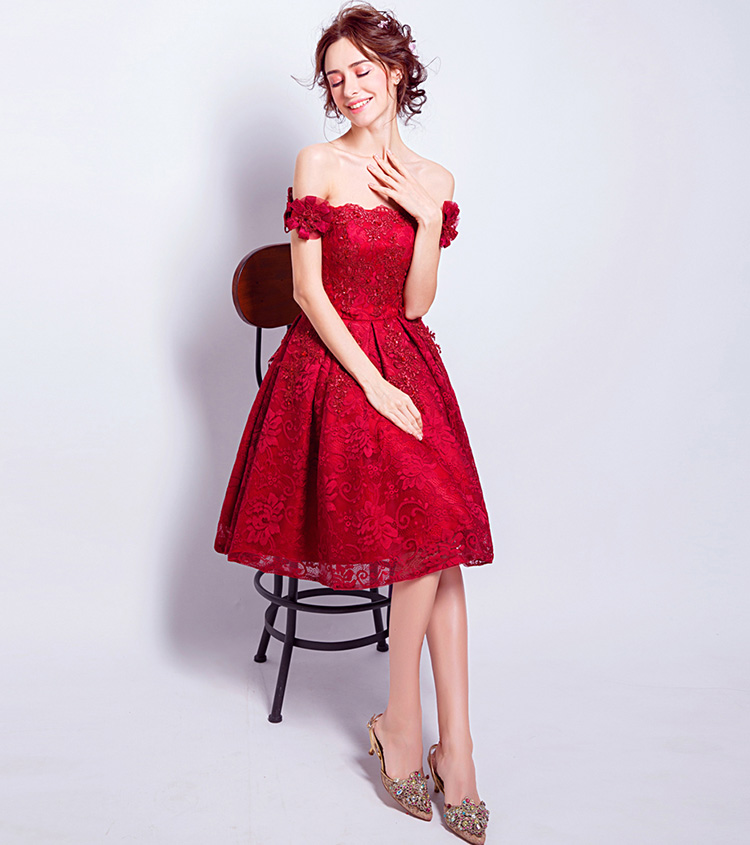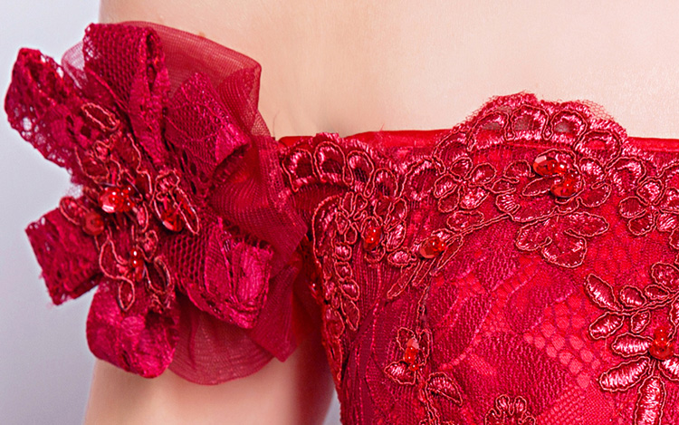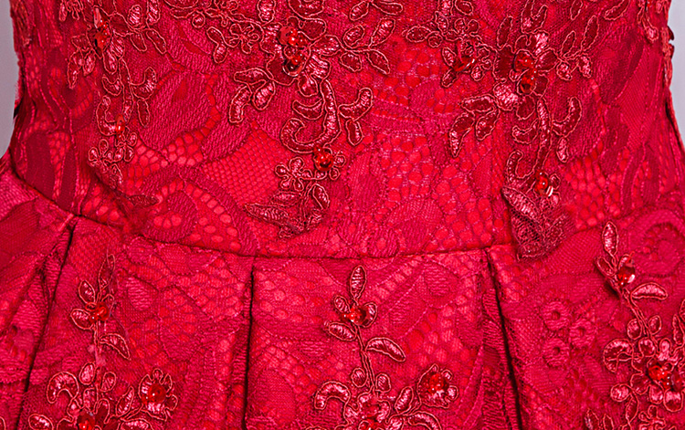 Red Boat Neck Flower Lace Luxury Cocktail Dress