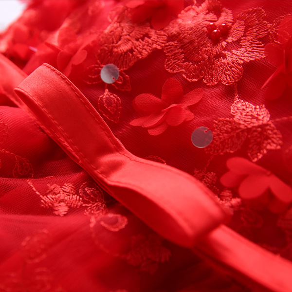 Red Color Sheer Mesh Appliques Beading Long Dress