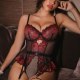 Red Lace & Mesh Bodysuit with Garter Straps