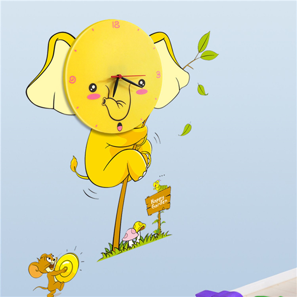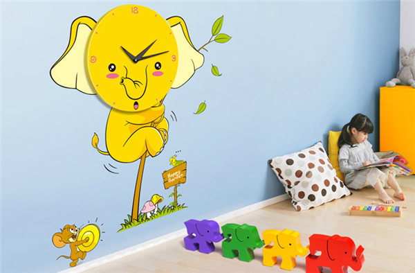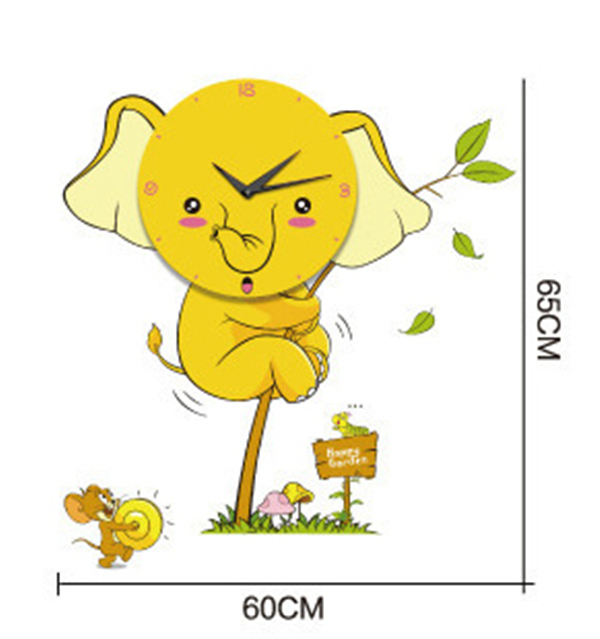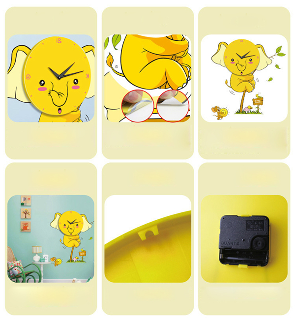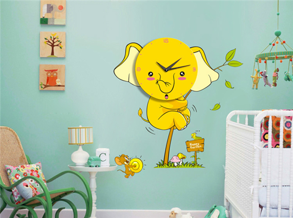 Removable Wall Stickers 3D Elephant Kid's Room Clock