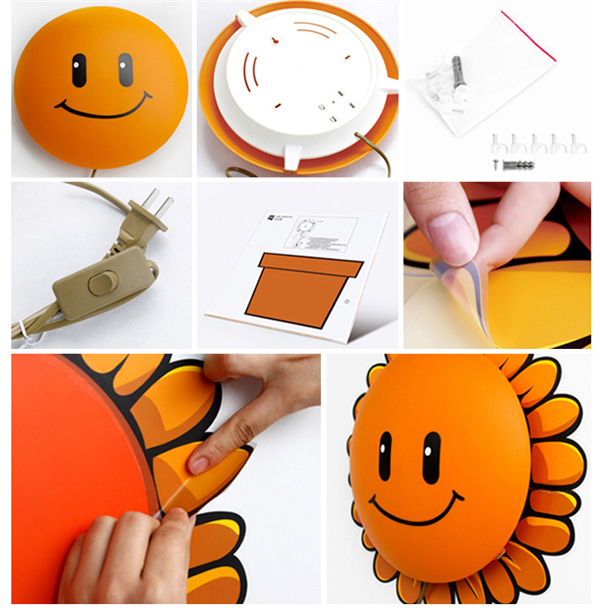 Removable Wall Stickers 3D Sunflower Lamp For Kid's Room