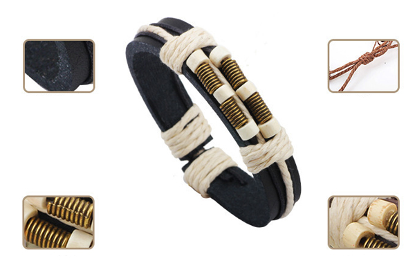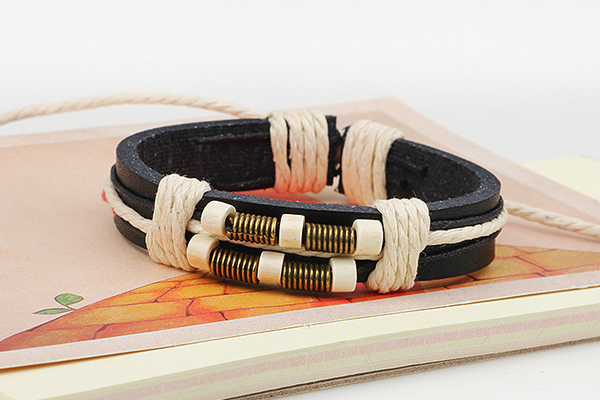 Retro Alloy Dual Strand Leather Bracelet With Beads