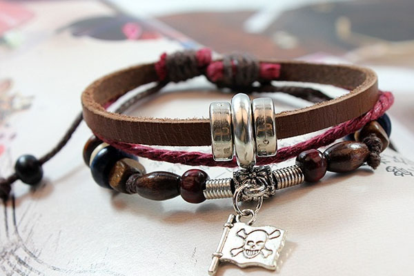 Retro Beads PU Leather Bracelet With Pirate Flag Pendant