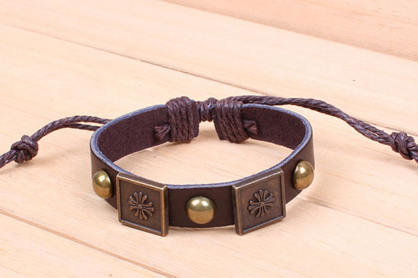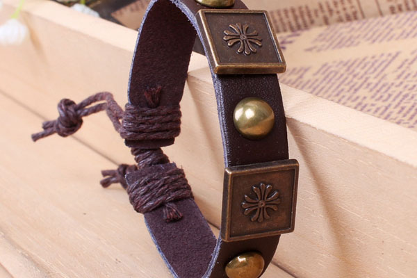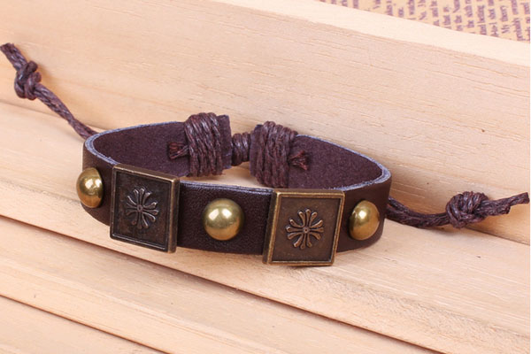 Retro Block Cross Handmade Rivets Leather Bracelet