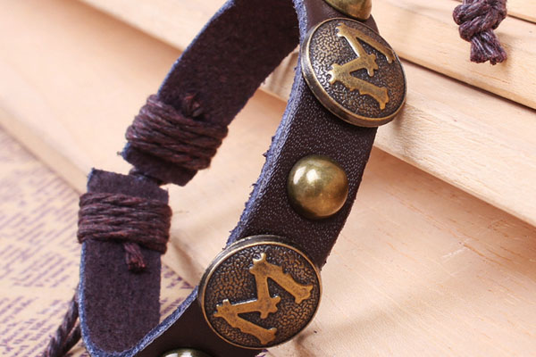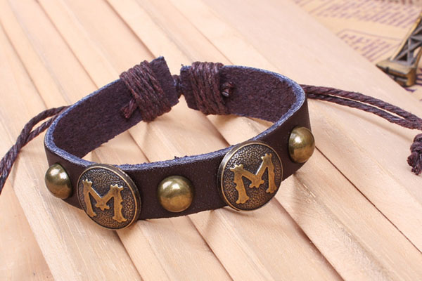 Retro Letter "M" Handmade Rivets Leather Bracelet
