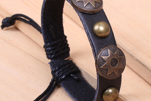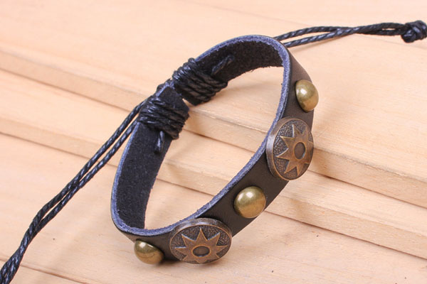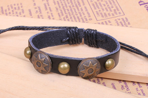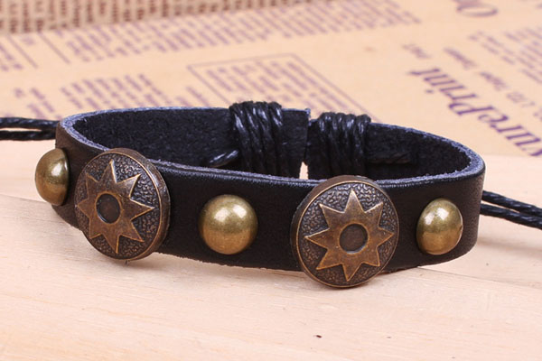 Retro Sun Pattern Handmade Rivets Leather Bracelet