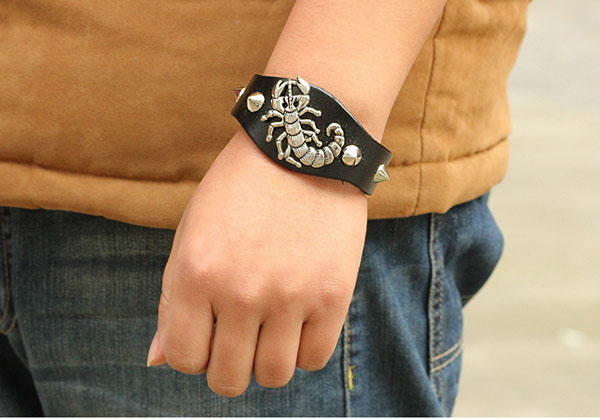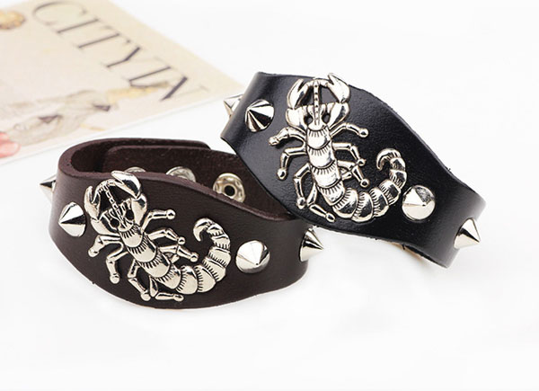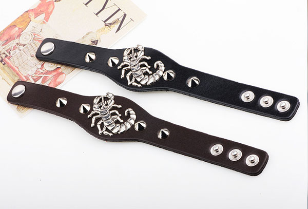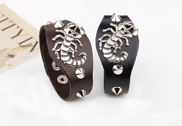 Rock Alloy Scorpio Sharp Rivets PU Leather Bracelet