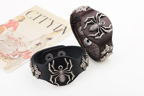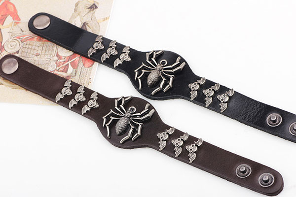 Rock Alloy Spider Skull Studded PU Leather Bracelet
