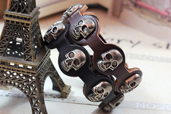Rock & Punk Alloy Skull Studded PU Leather Bracelet