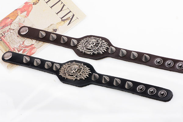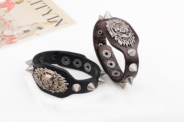 Rocker Sharp Rivets Studded PU Leather Bracelet With Flame Skulls Pattern