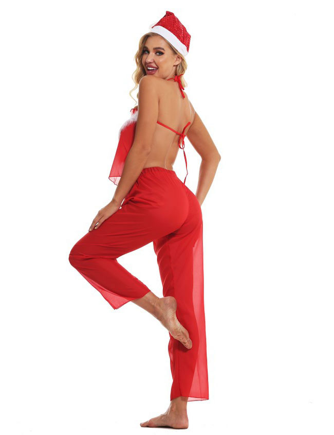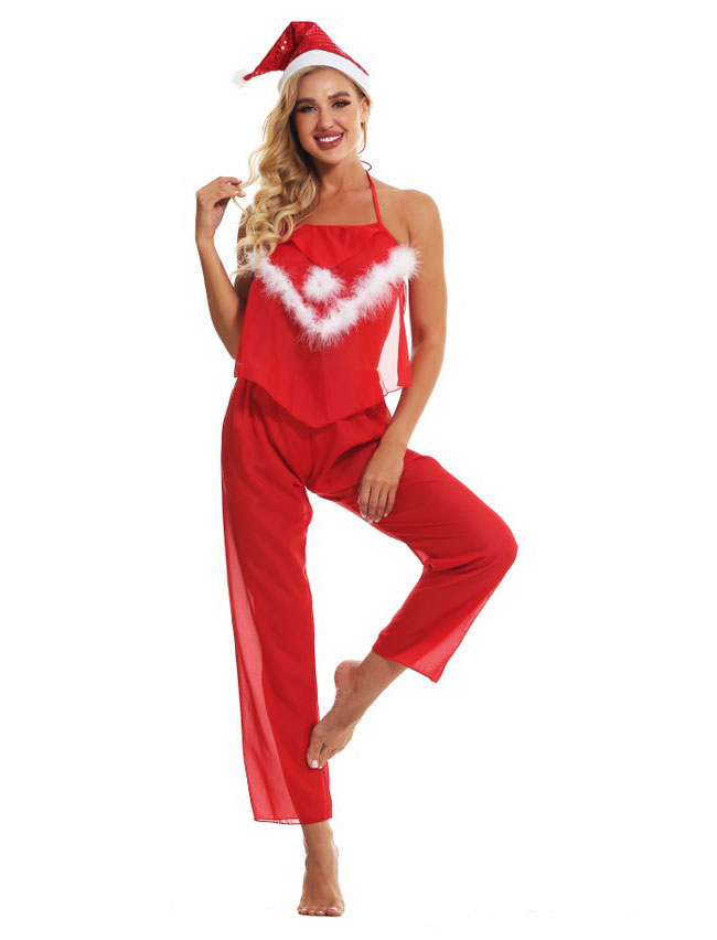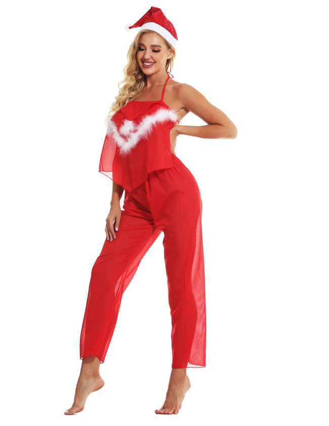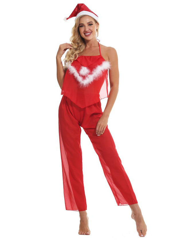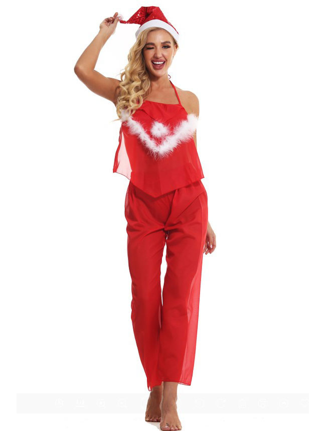 Leave out your milk and cookies cause this cutie is making her way down the chimney! Stun your babe at midnight in this Santa Sweetie lingerie costume featuring a red cami top with a white marabou fur trim, a matching pants, and a cute Santa hat.