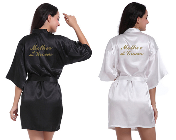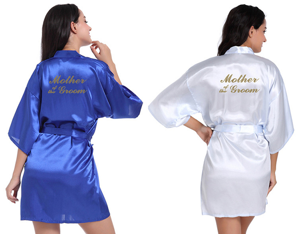 Satin Kimono Wedding Party Getting Ready Robe With Gold Glitter
