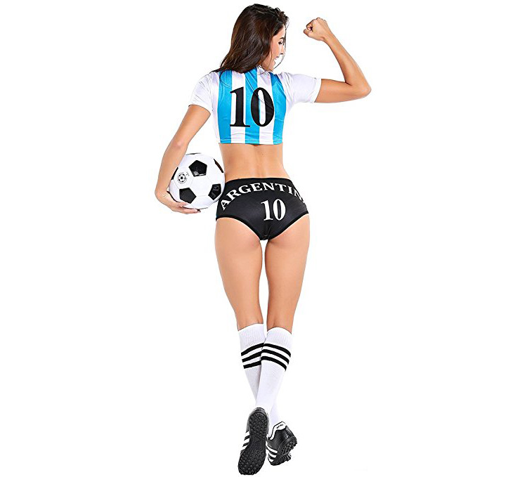 Everyone will be inspired by Argentina National Team when you wear this sexy midriff baring two piece costume