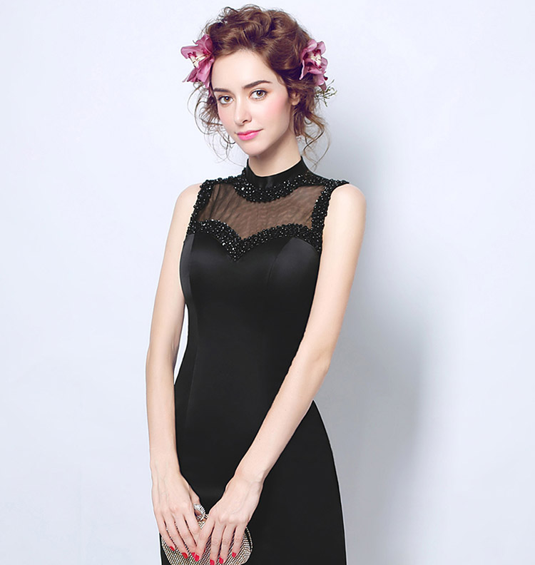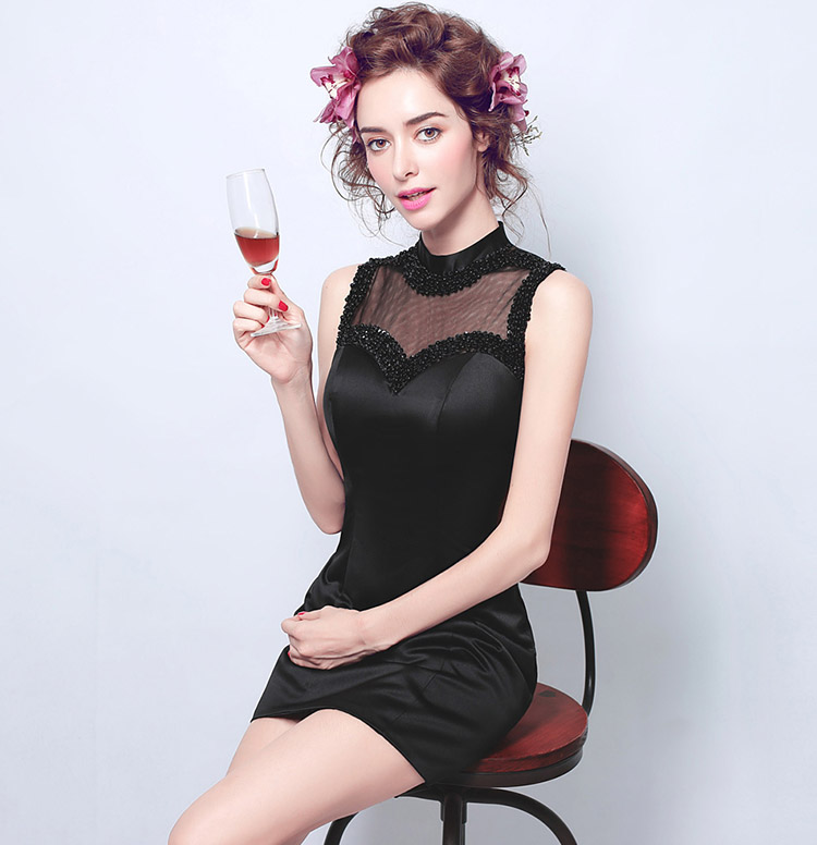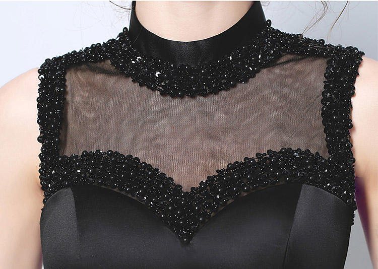 Style:Sleeveless high collar. Bead decoration. Zipper.