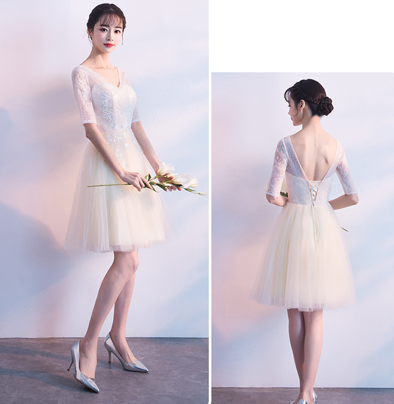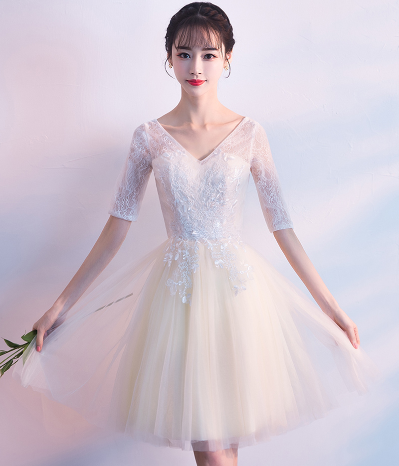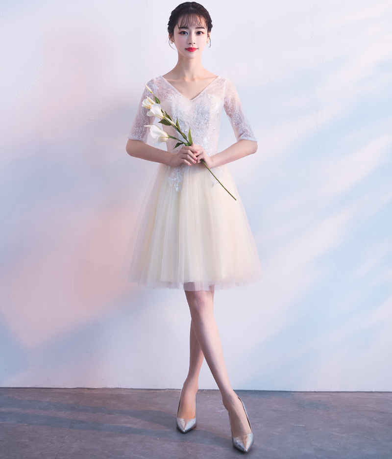 Sexy Champagne V-neck Half Sleeves Evening Dress
