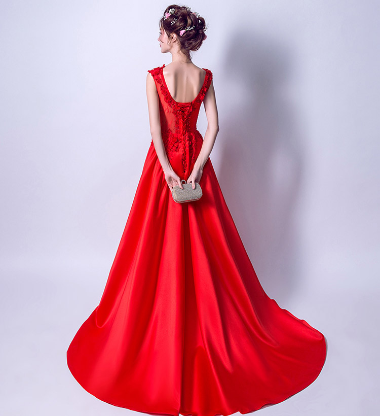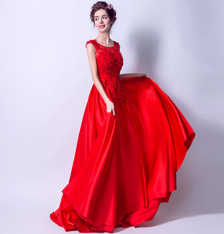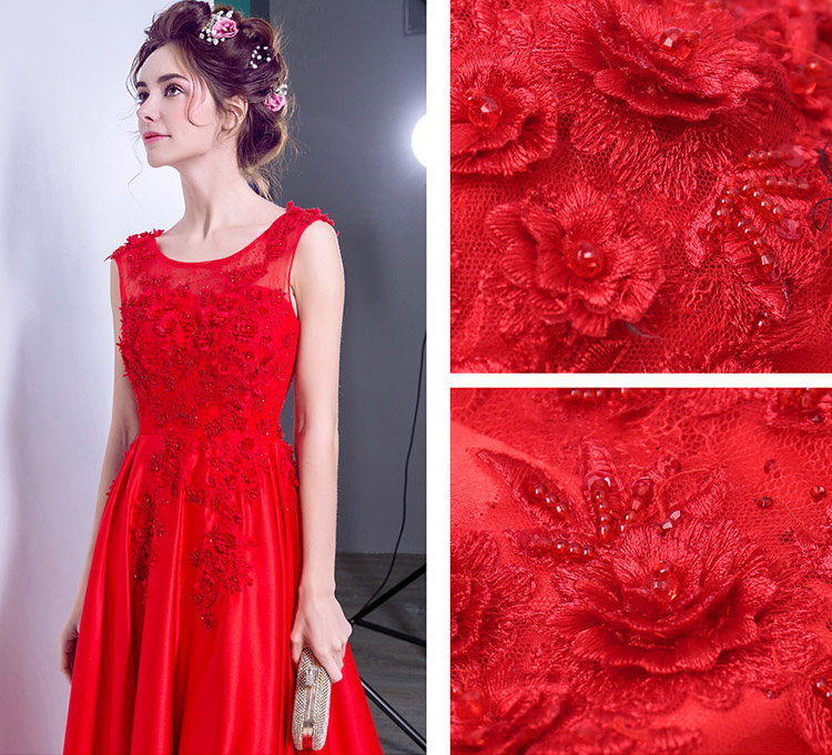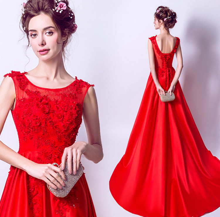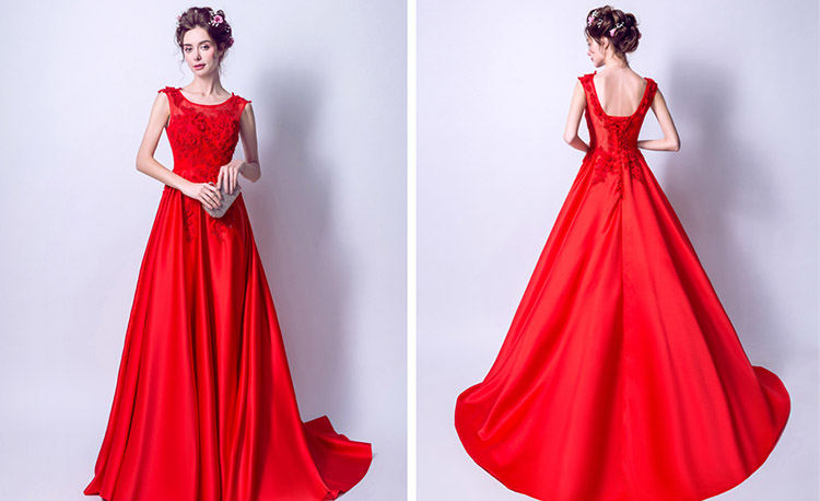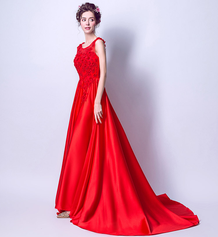 Sexy Elegant Red Round Neck Sleeveless Long Evening Dress
