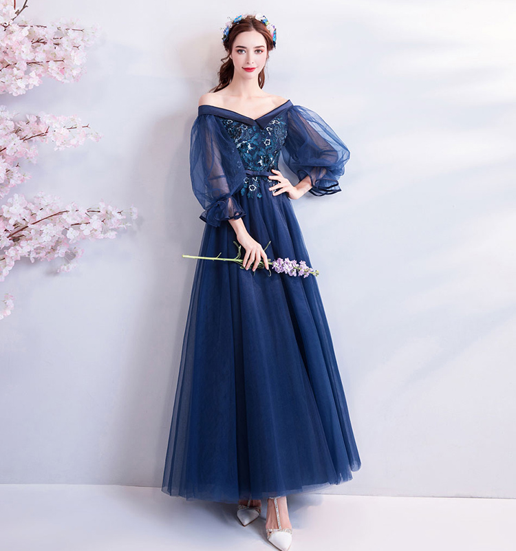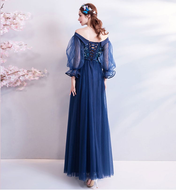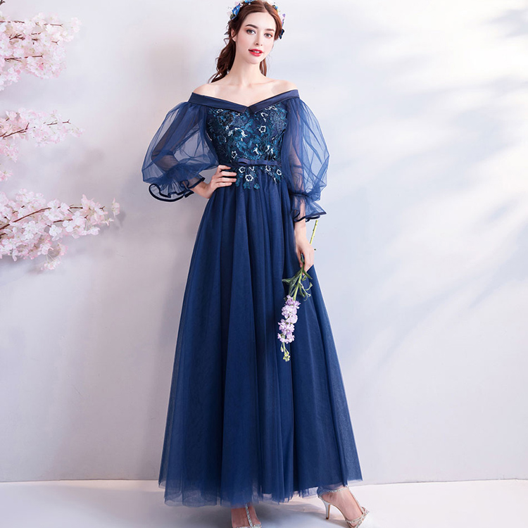 Sexy Lace Puff Sleeves Prom Evening Dress
