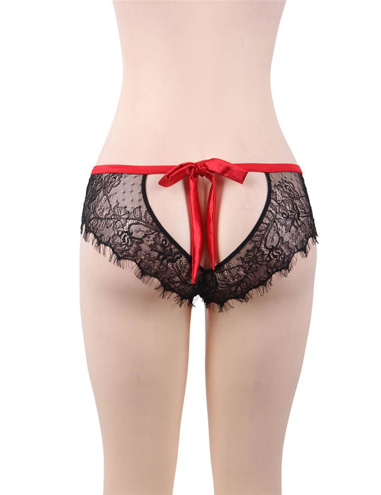 Sexy Lace Silk Heart Open Back Panty