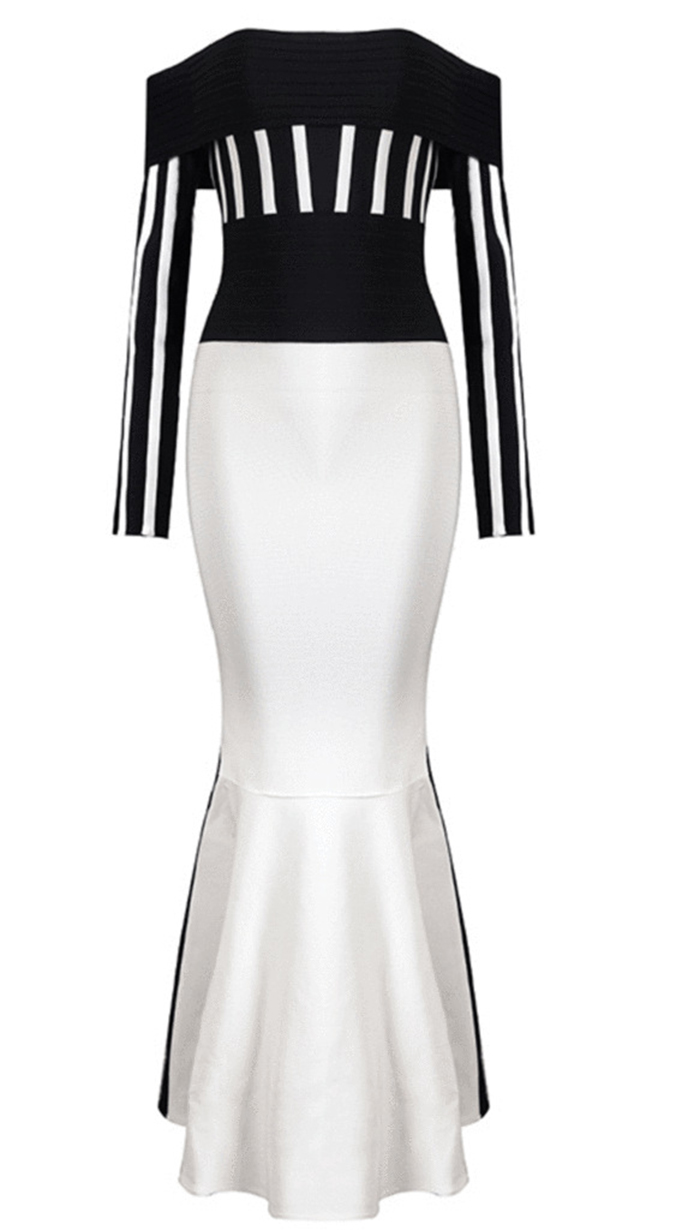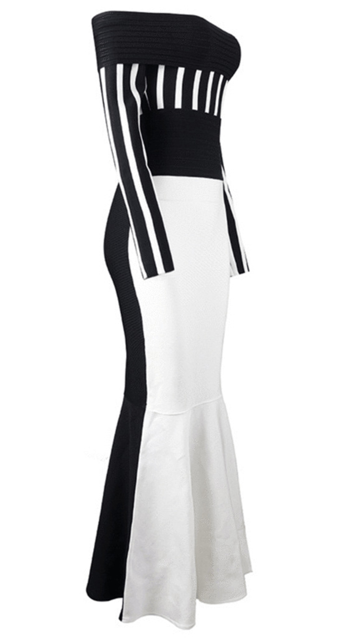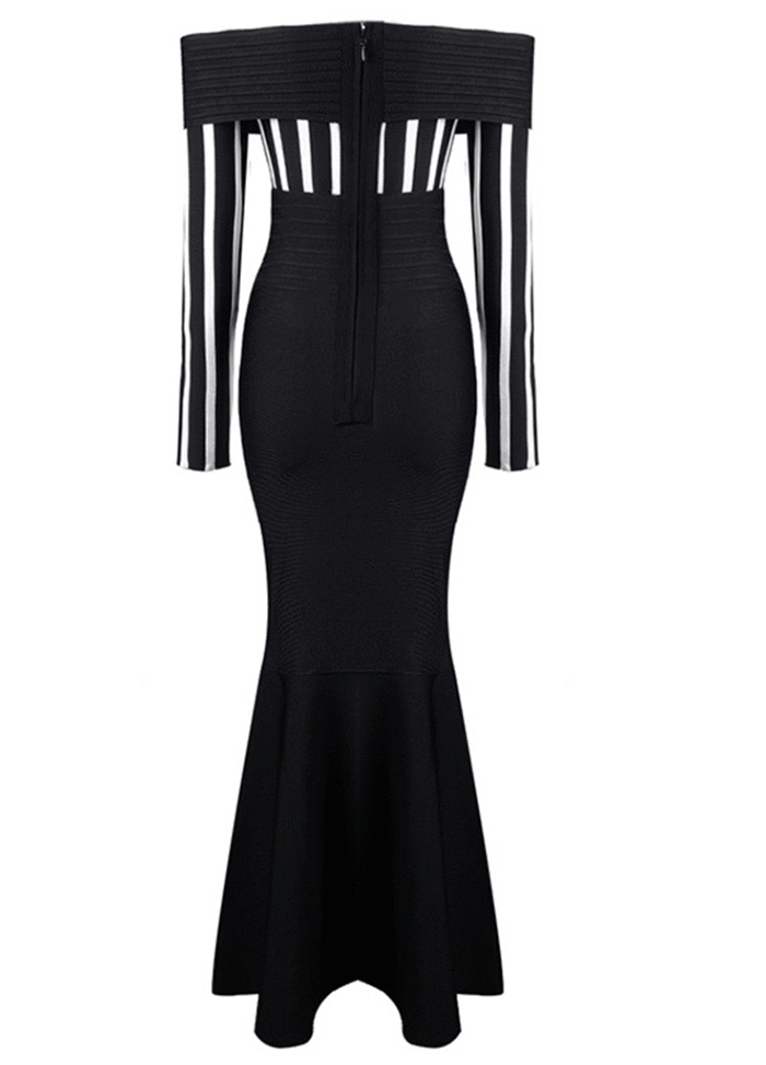 Sexy Mermaid Off Shoulder Stripe Long Evening Gowns