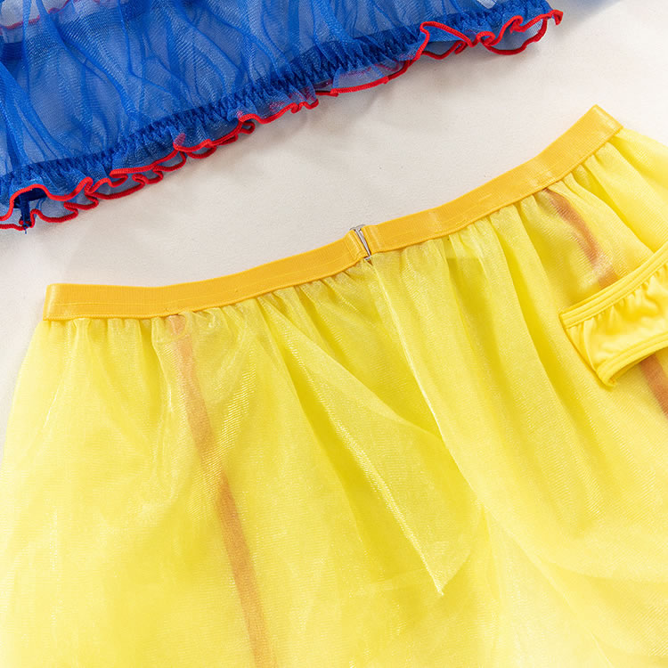 Embrace the magic of winter with this enchanting Miss Snow costume. The set includes a flirty bandeau bra top, playful arm sleeves, and a matching mini skirt that perfectly captures the season's charm. Complete with a cheeky panty, this outfit offers a fun and sexy twist on a classic winter look. Perfect for festive occasions or a night of playful roleplay, this costume is sure to captivate and delight.