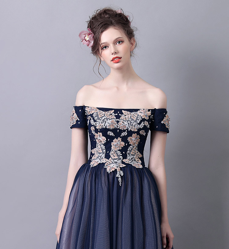 Sexy Off The Shoulder Black Embroidery Evening Prom Dress