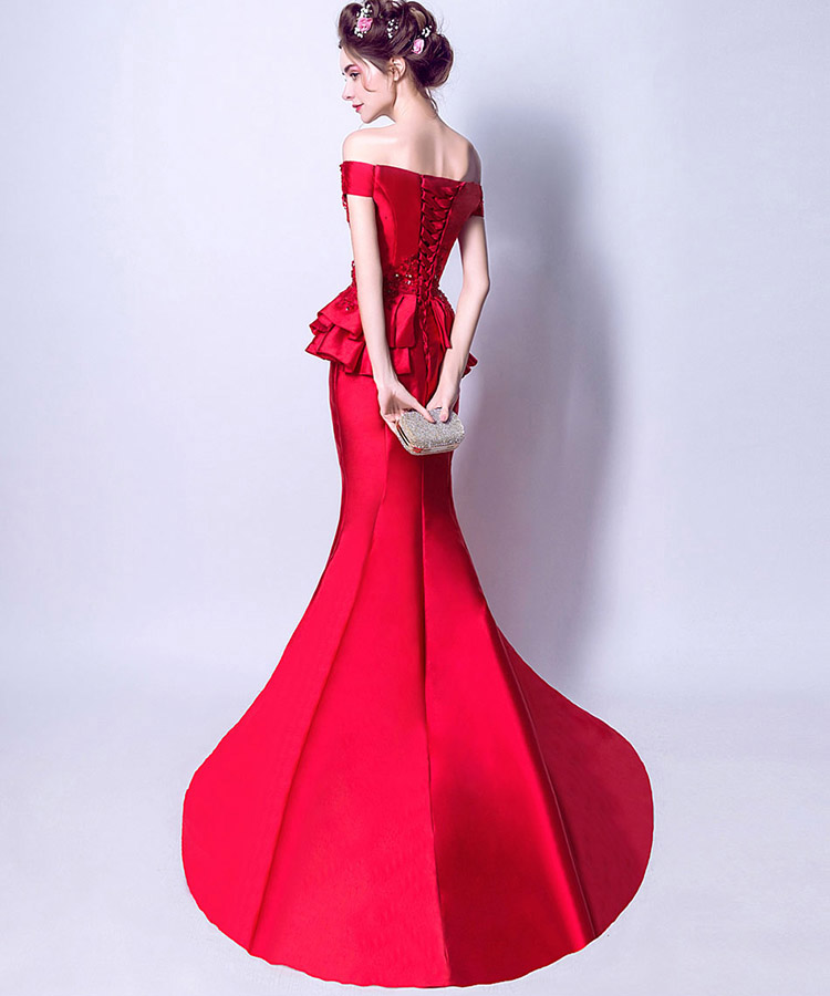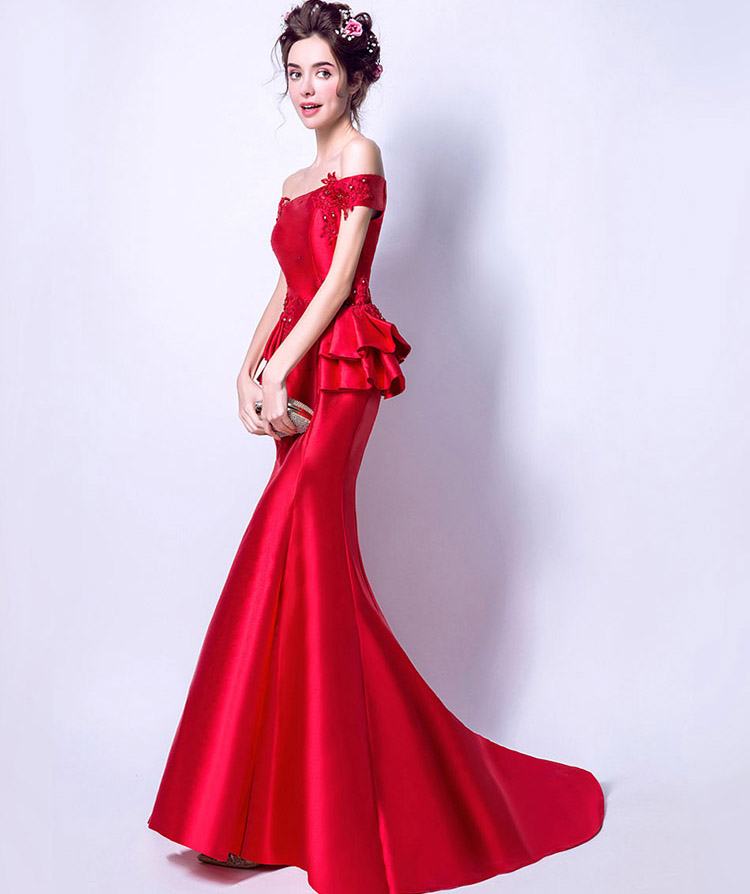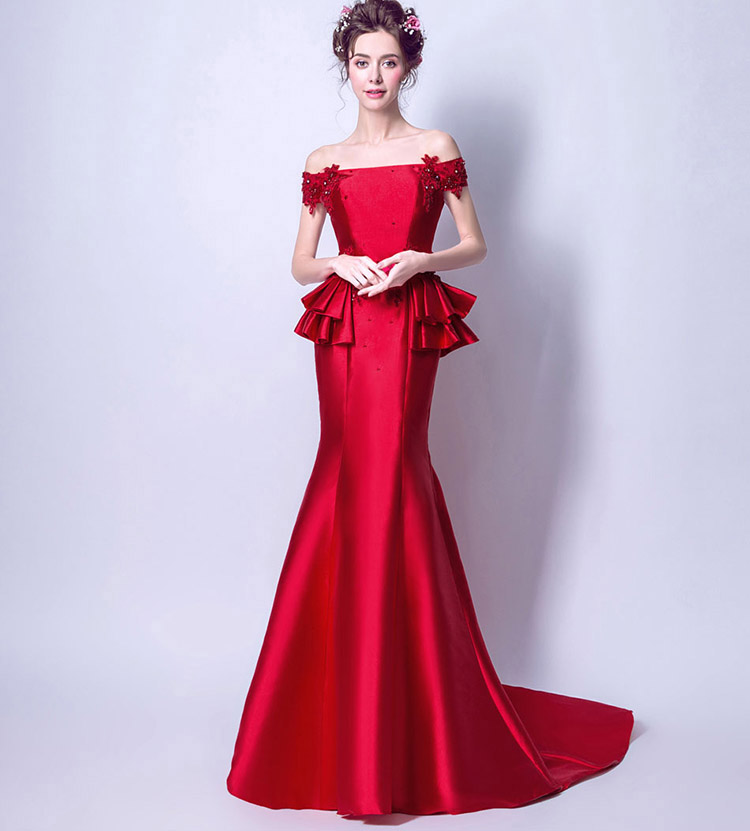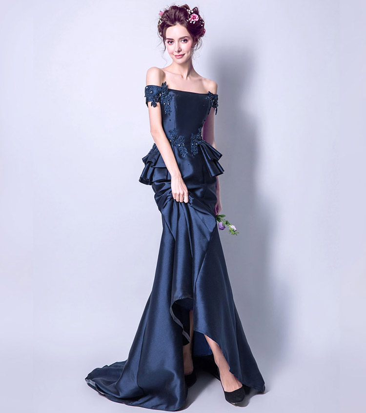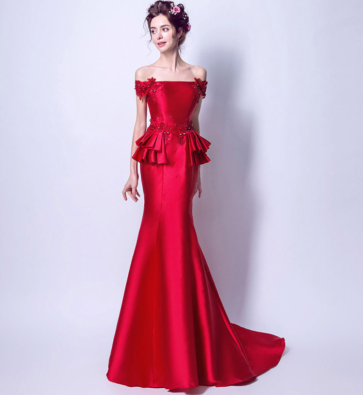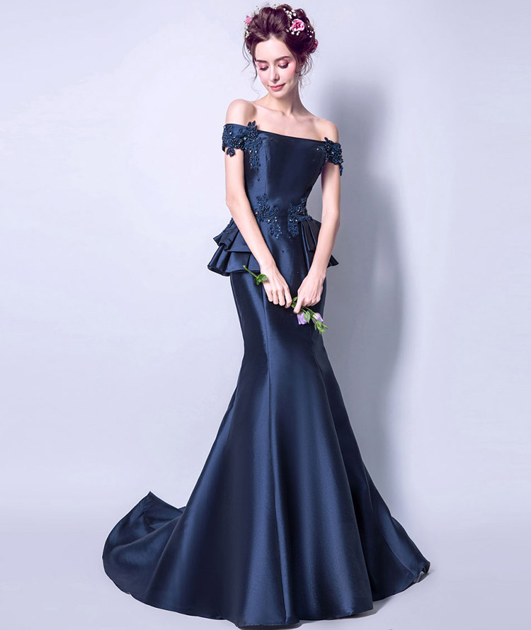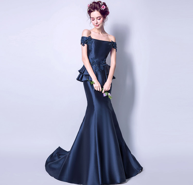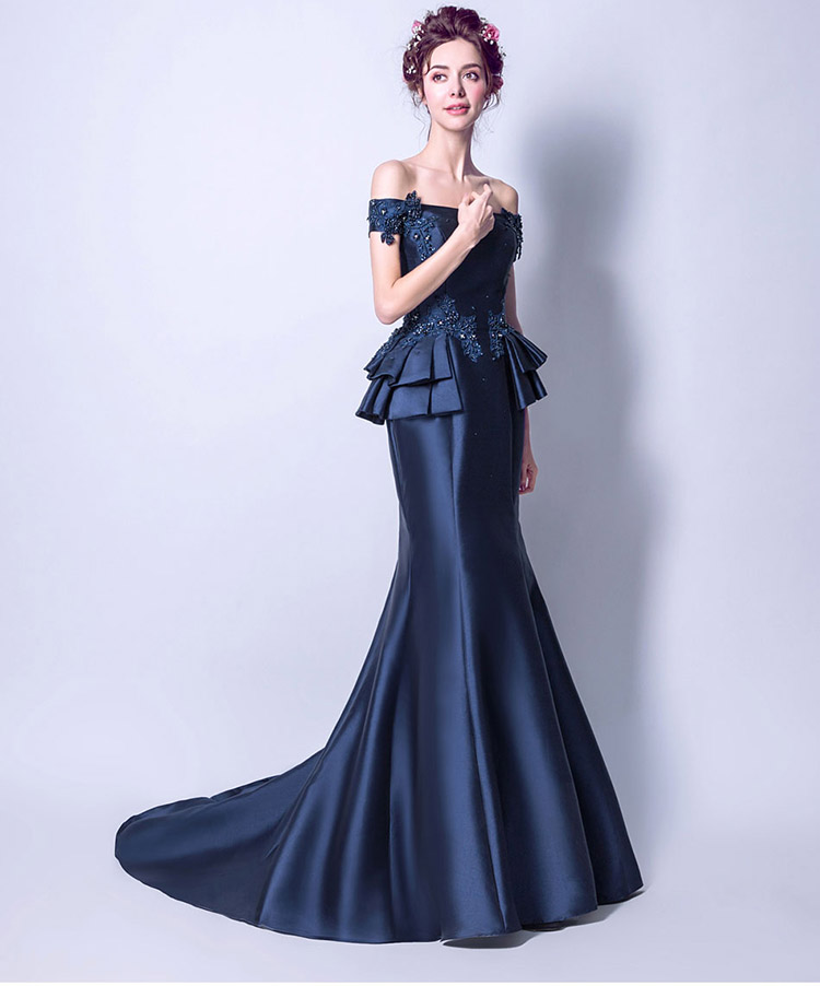 Sexy Off The Shoulder Embroidery Mermaid Long Train Evening Dresses