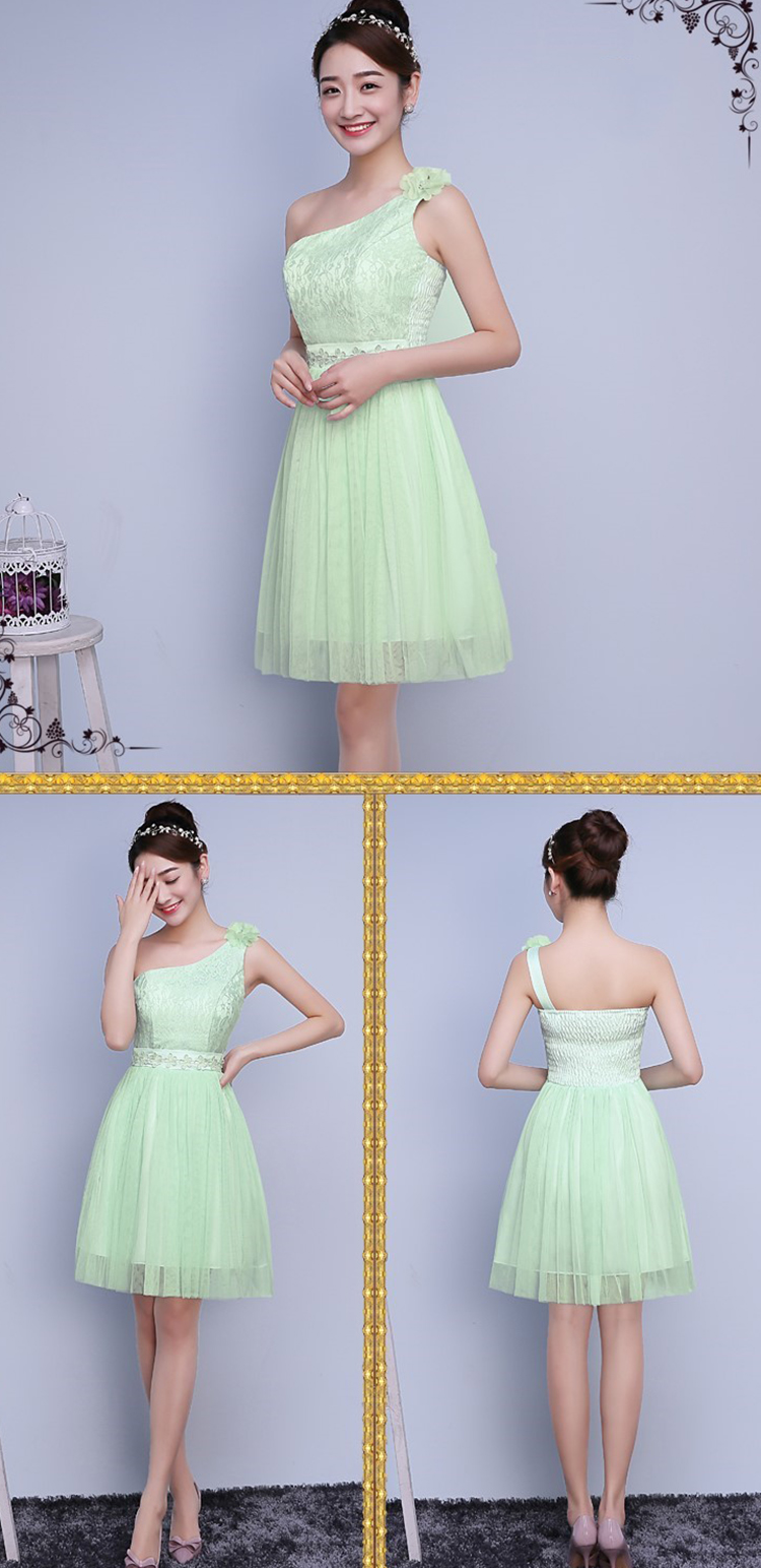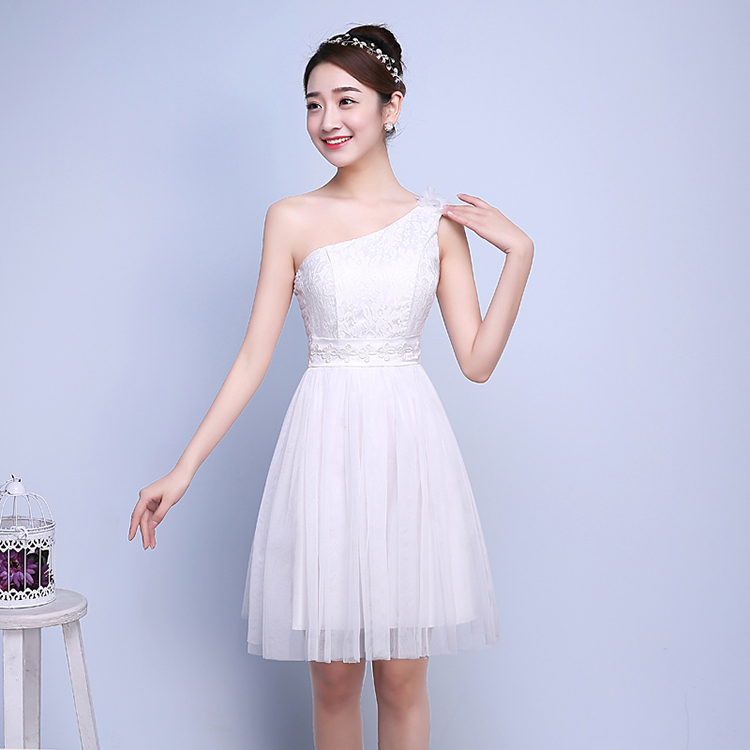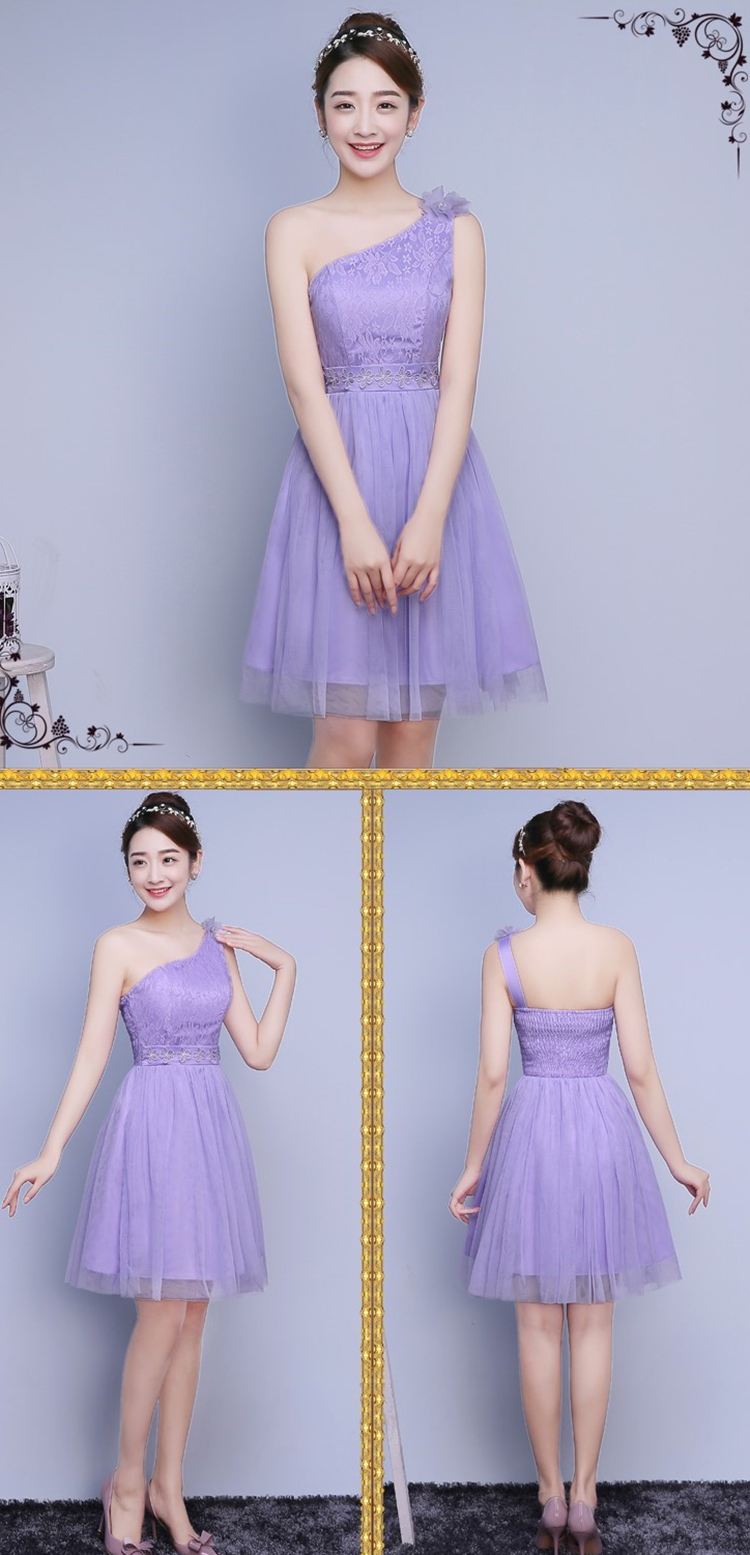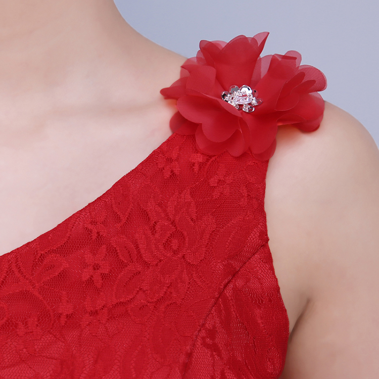 Sexy One Shoulder Elegant Embroidery Lace Sleeveless Bridesmaid Dress