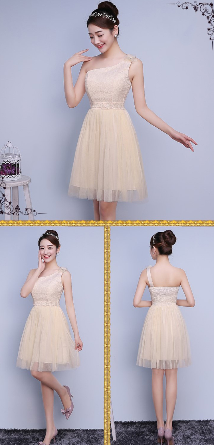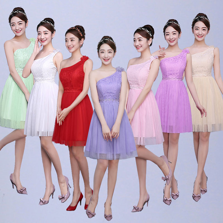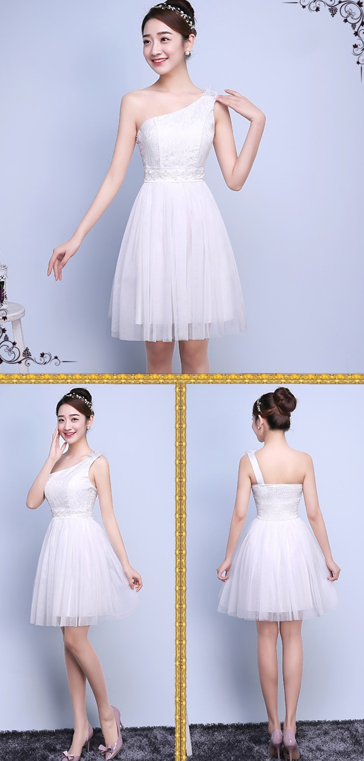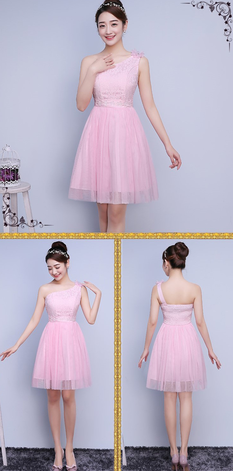 Sexy One Shoulder Elegant Embroidery Lace Sleeveless Bridesmaid Dress