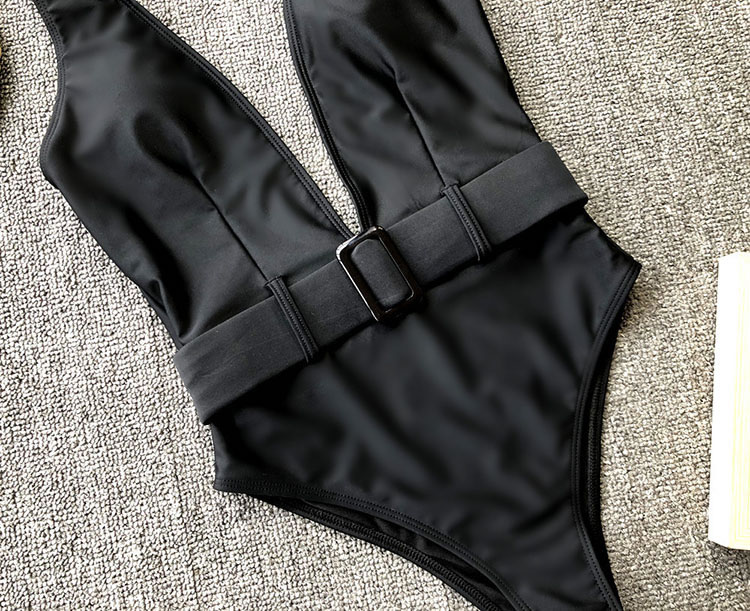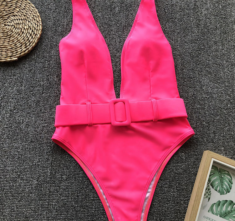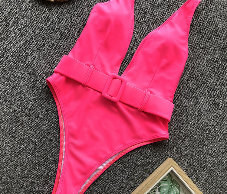 Stand out from the crowd in this one piece swimsuit featuring a plunging neckline, thick shoulder straps, a deep V-back, and a cheeky cut back.