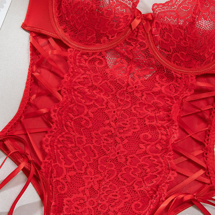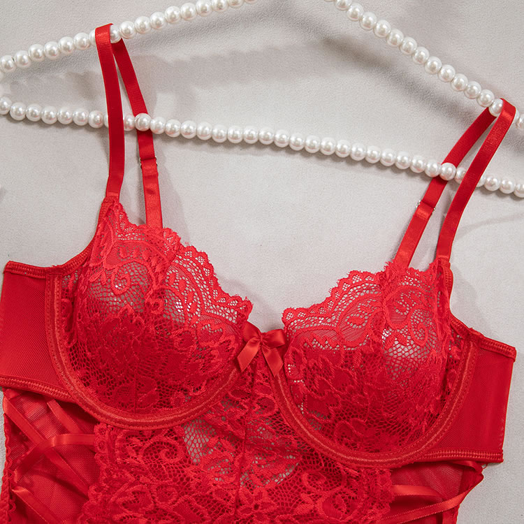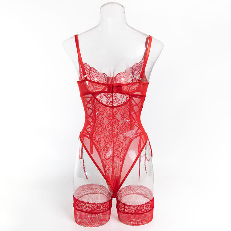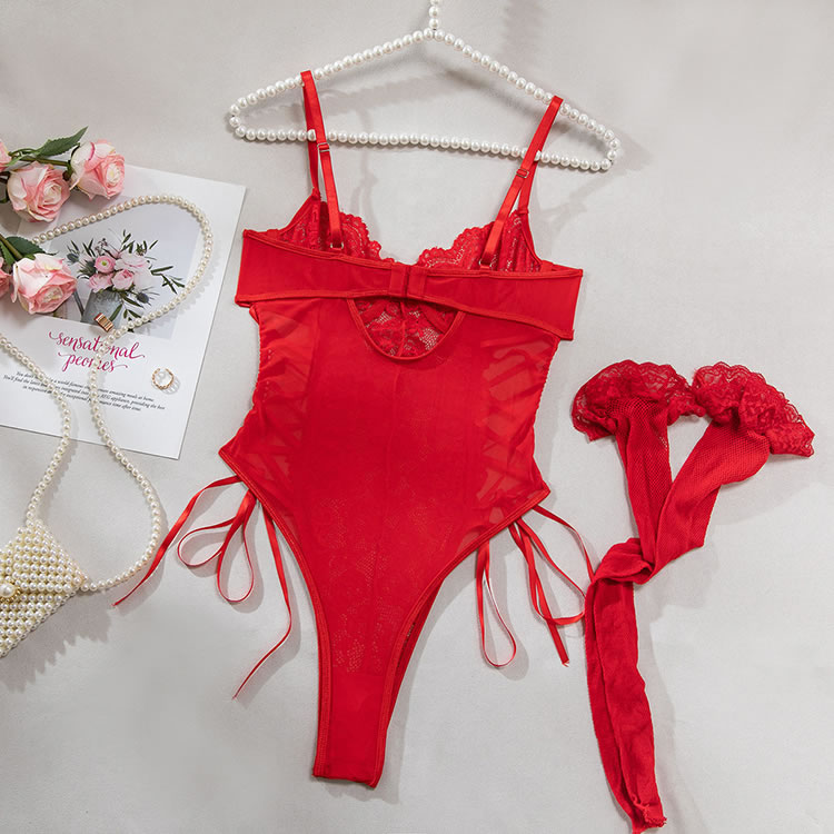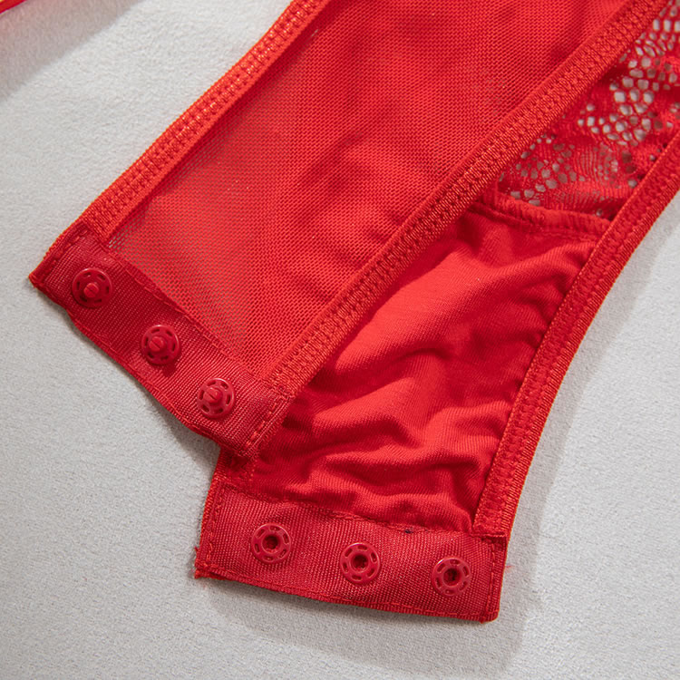 Sexy Red One-Piece Lingerie with Fishnet Detail