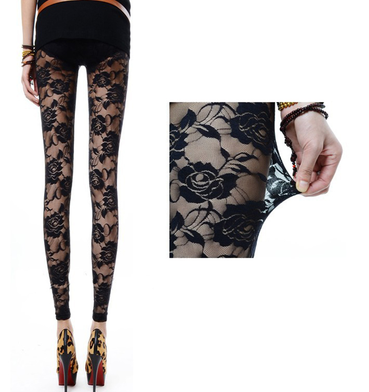 Sexy Rose Floral Lace Tights Leggings Slim Pants