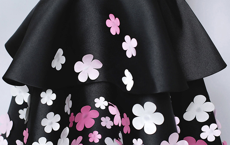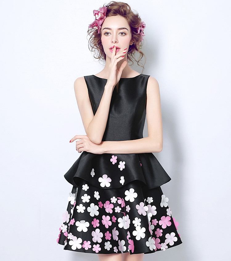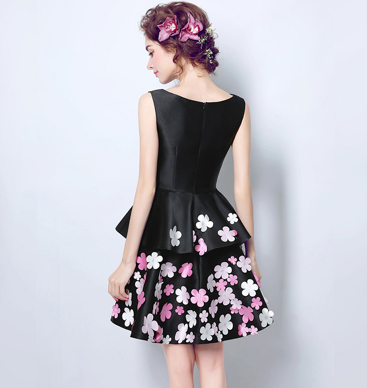Sexy Satin Short Tank Black Flowers Evening Dress