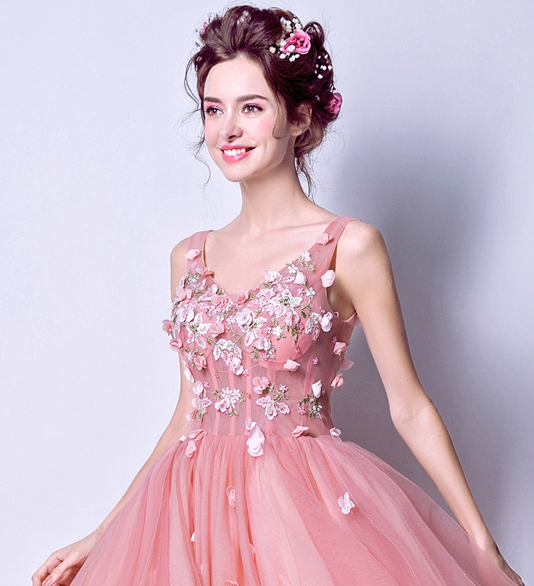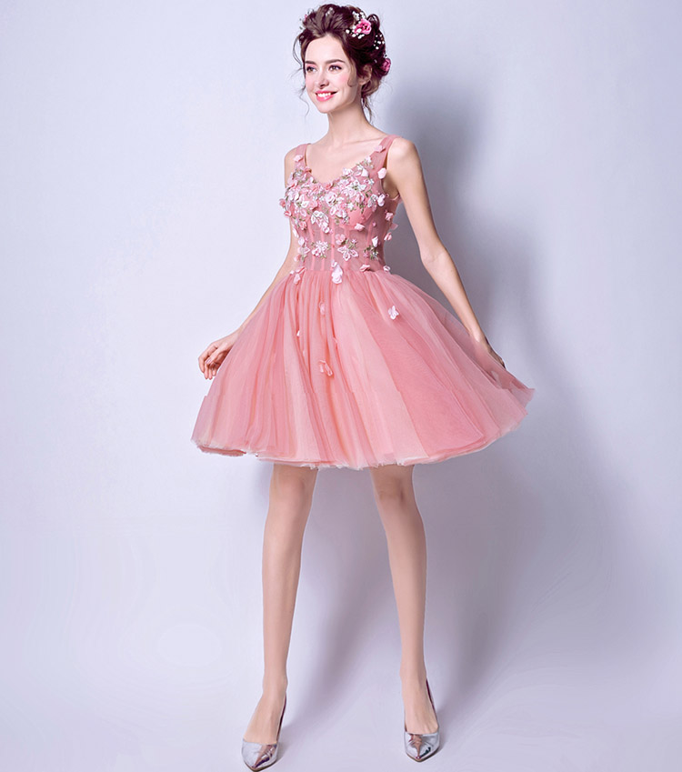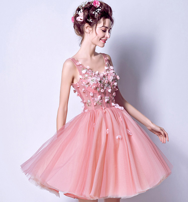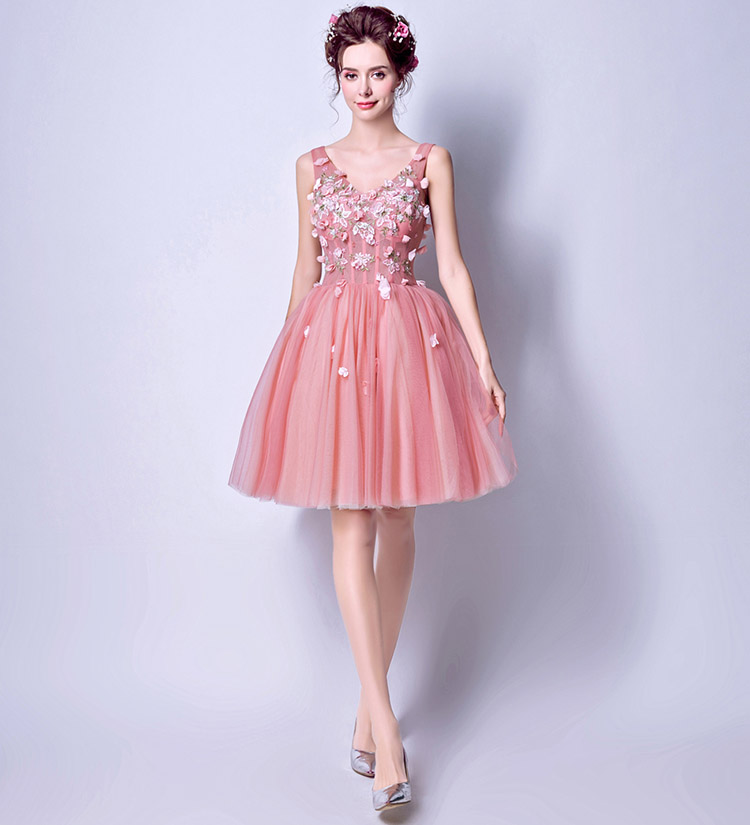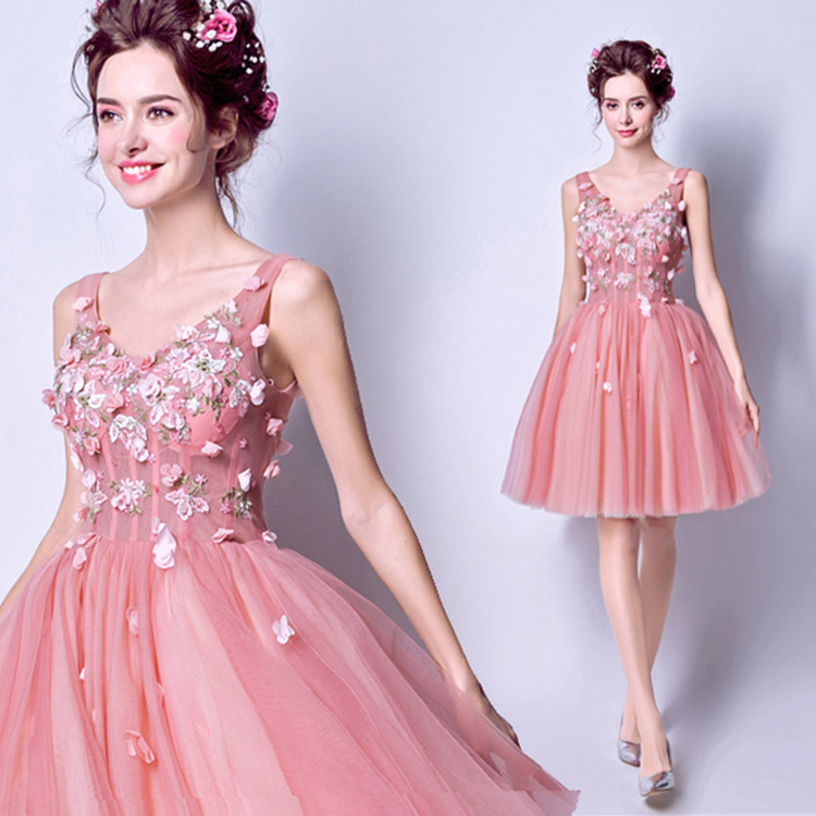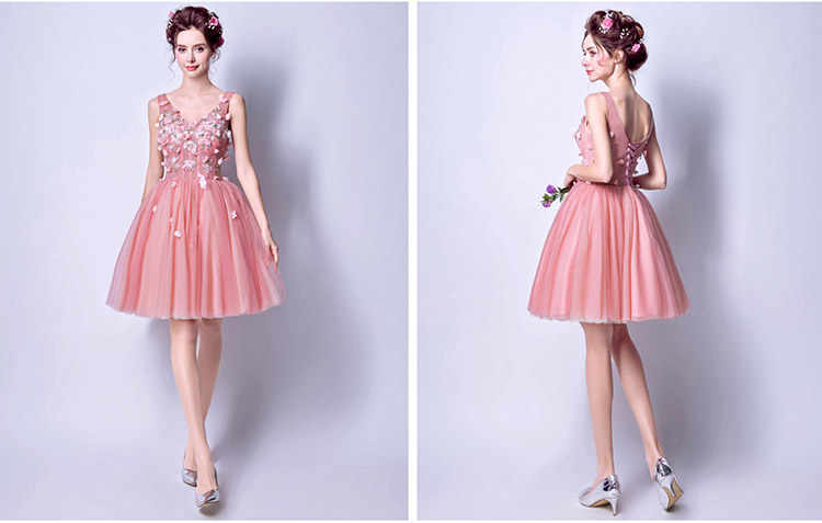 Sexy V-neck Lace Flower Embroidery Short Bridesmaid Dress