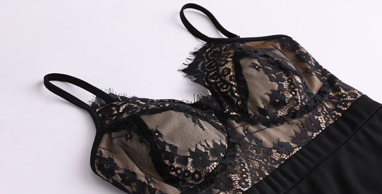 Sexy V-neck Sling Splice Lace Bodycon Dress