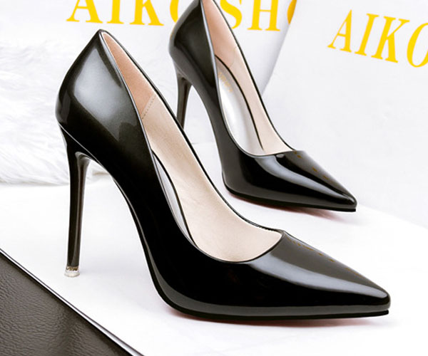 Shallow Mouth Women Patent Leather High Heeled Shoes