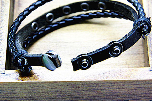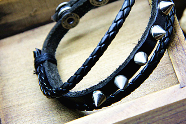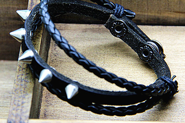 Sharp Metal Rivets Snap Button PU Leather Bracelet
