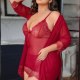 Sheer Red Lingerie Set with Long Sleeve Cover-Up
