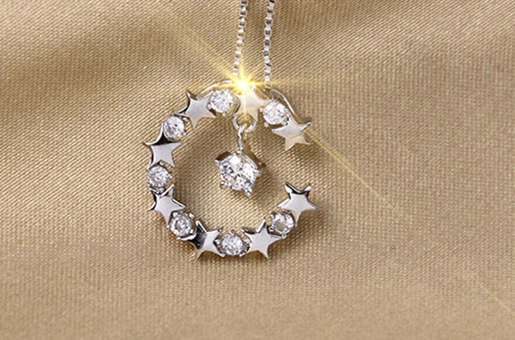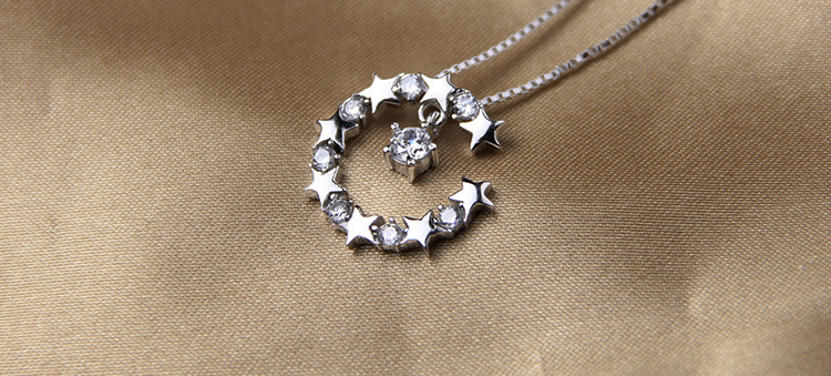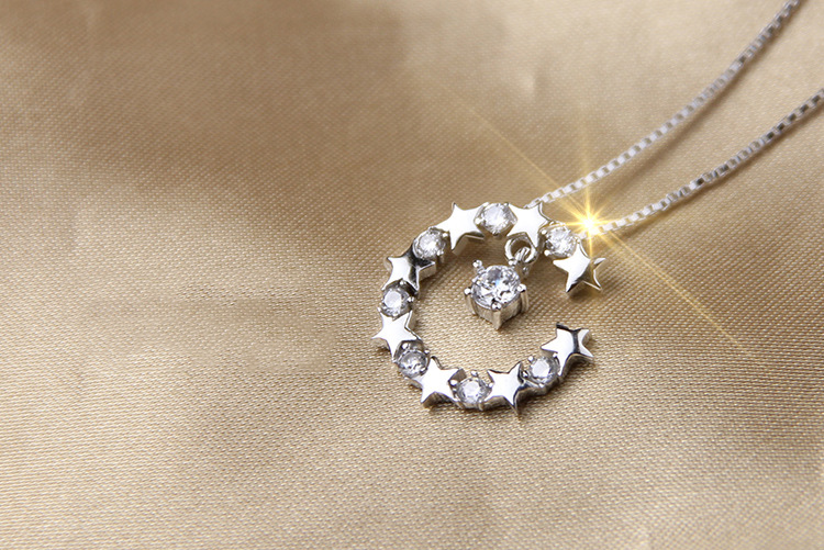 Silver Crystal Moon and Star Fashion Pendant Necklace