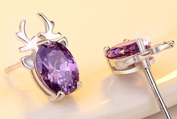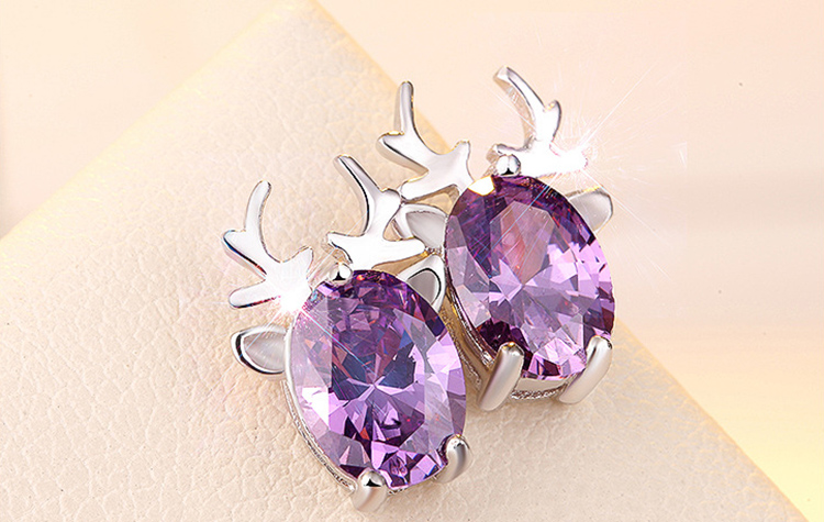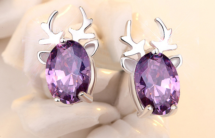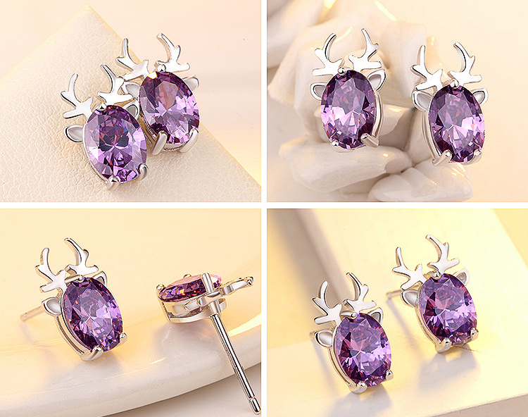 Silver Elk Purple Crystal Earrings