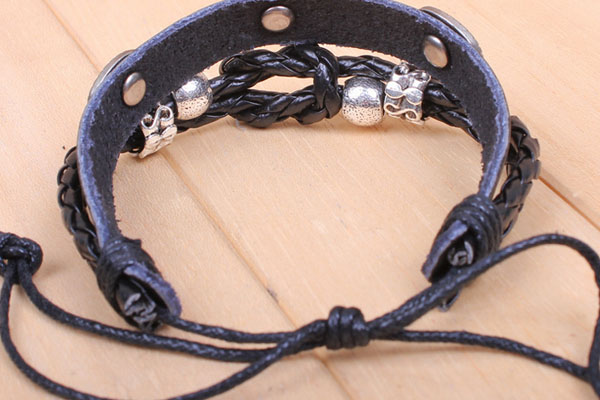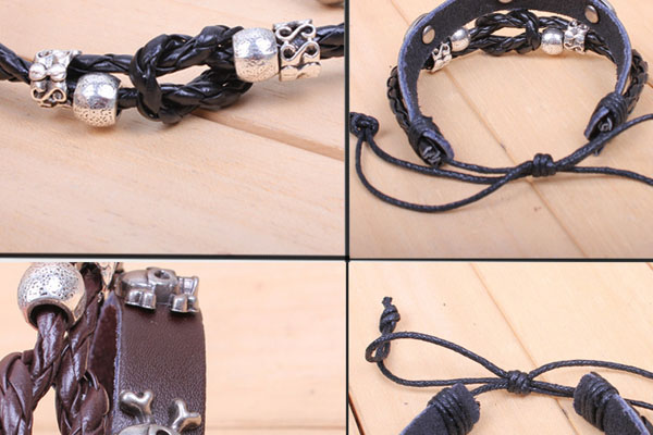 Skulls Handmade Beads Rope Weave Leather Bracelet