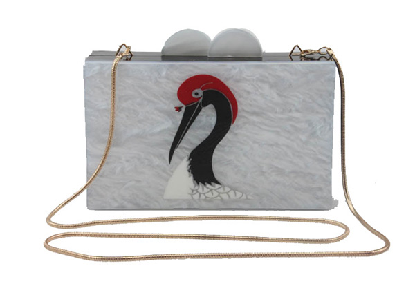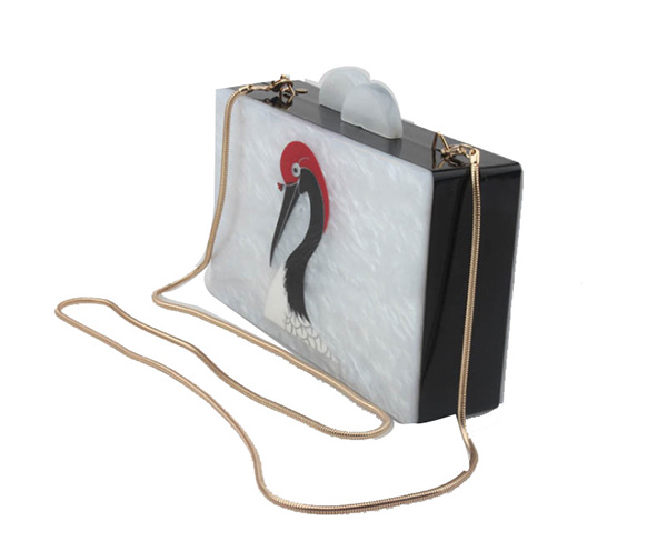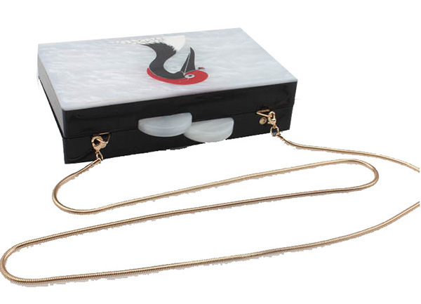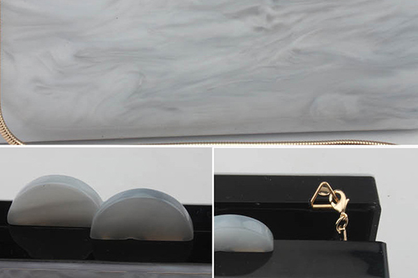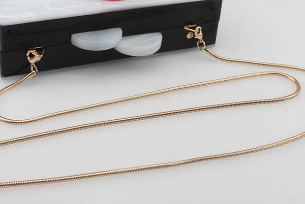 It comes with a removable rose gold color chain for use as a shoulder bag or crossbody bag.