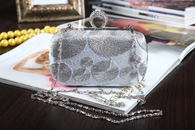 It comes with a concealable silver chain for use as a shoulder bag or crossbody bag.