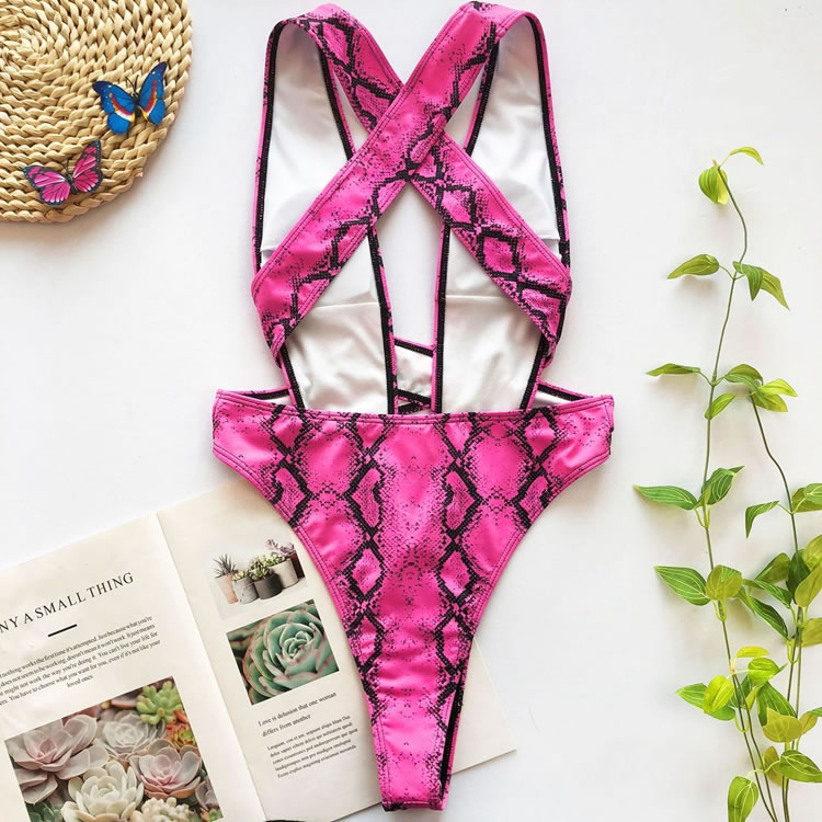 It's time to rep-style in the sun with this exclusive monokini swimsuit featuring a snake print, a low cut neckline, ultra high cut sides, and an ultra cheeky cut bottom.