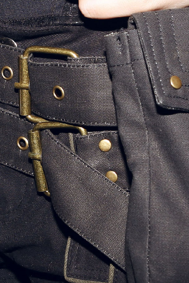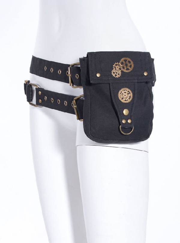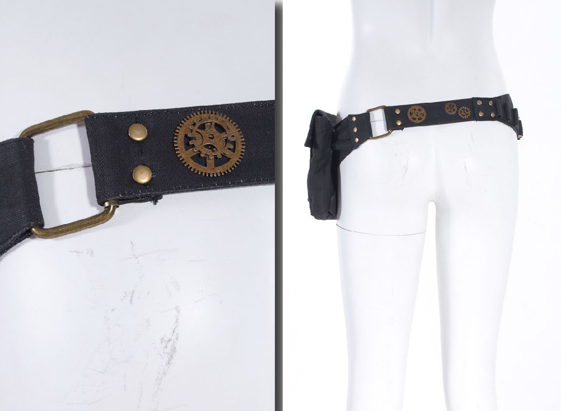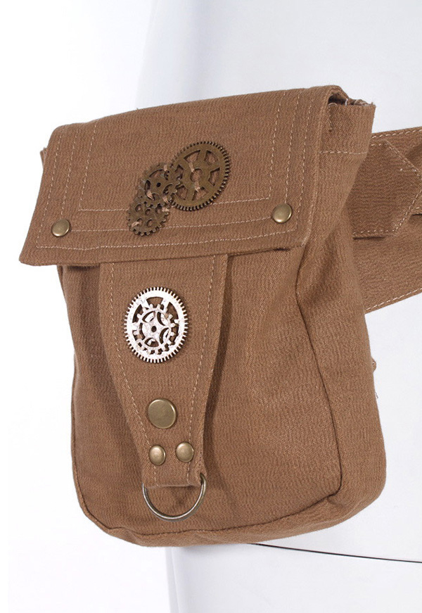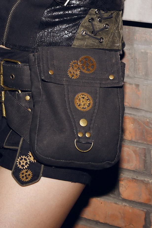 Steampunk youth-style small bag for personal items and travel stuff worn around the waist by two punk belts.