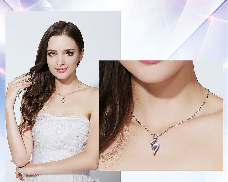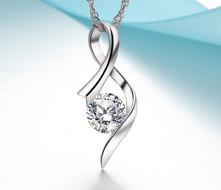 Sterling Silver Chain Necklace Crystal Ribbon Pendant