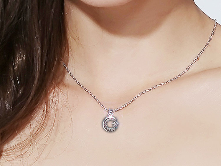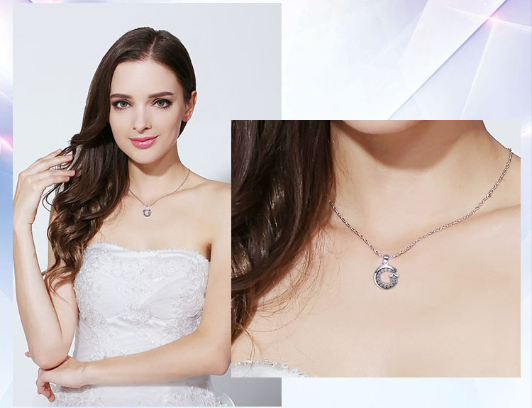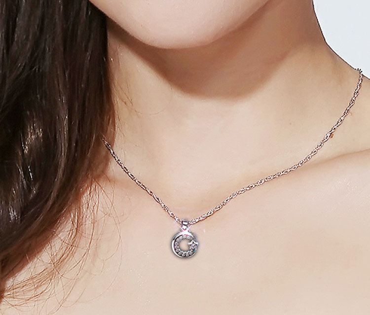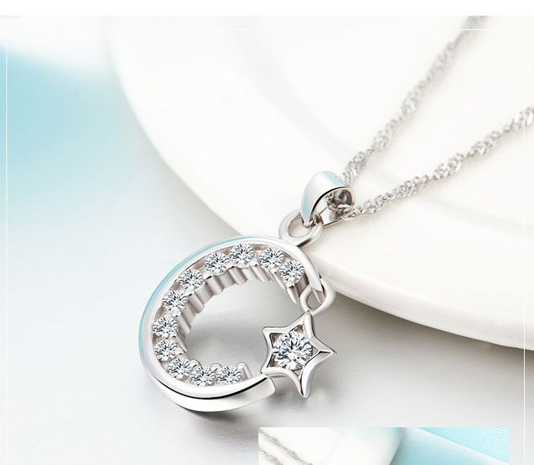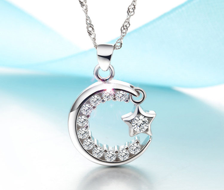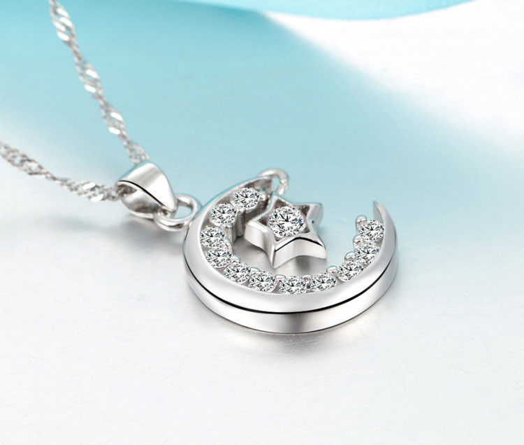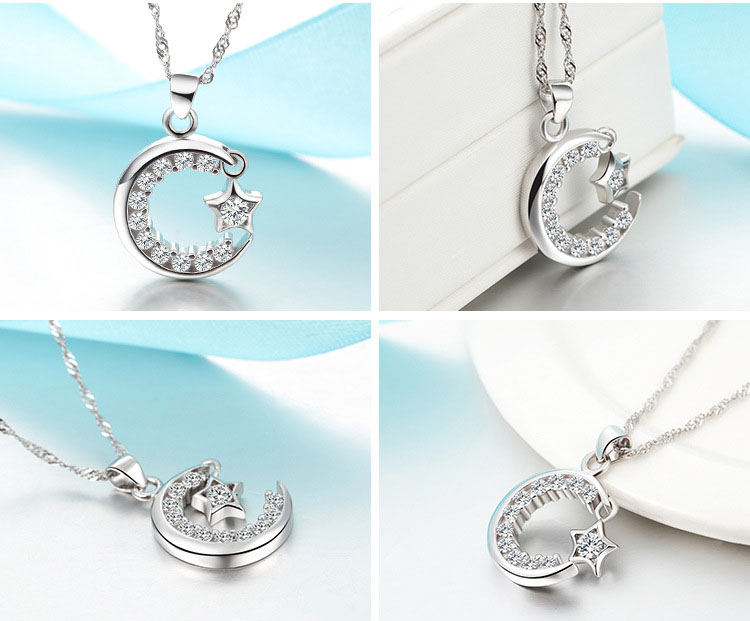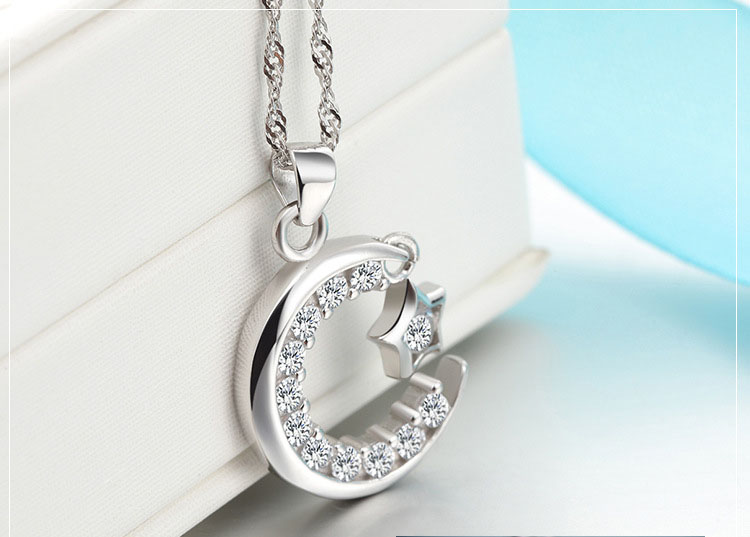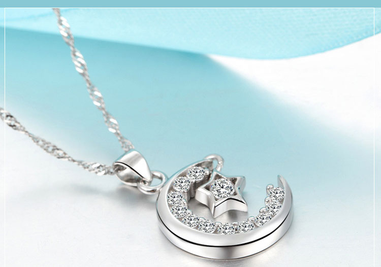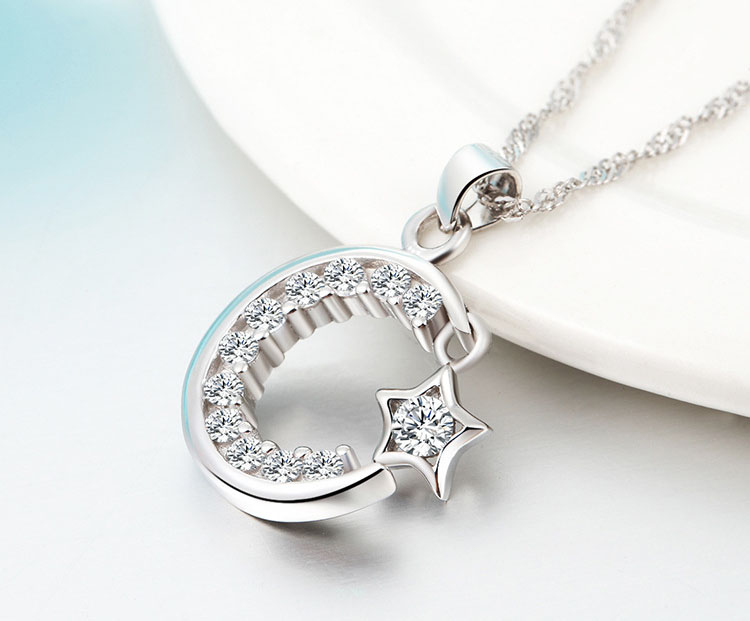 Sterling Silver Crystal Moon Star Pendent Necklace