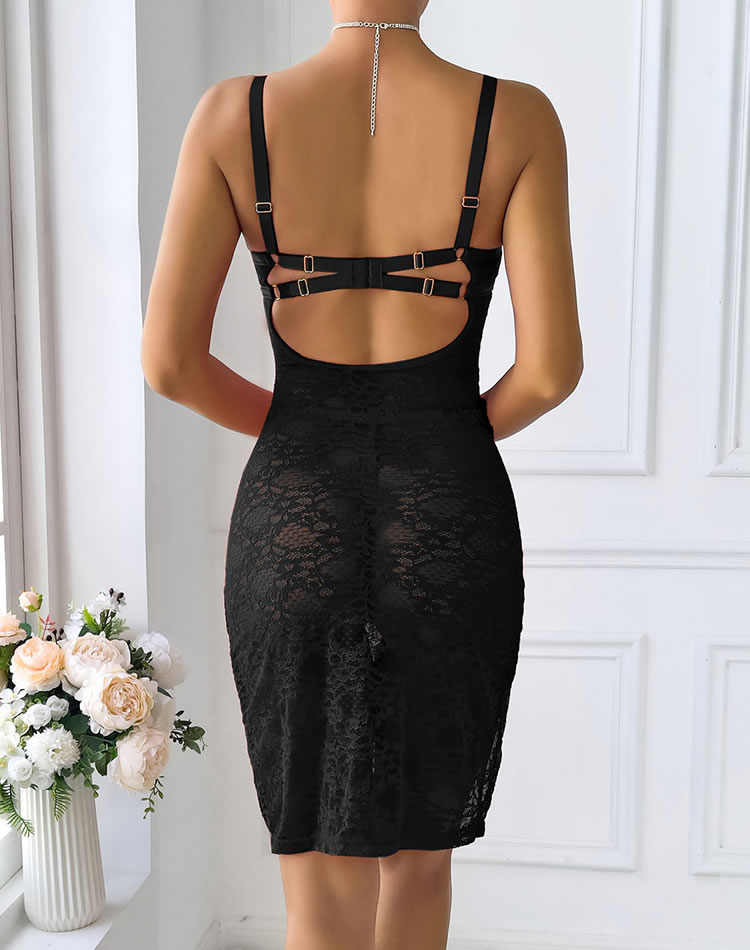Feel irresistible in this stunning white lace nightwear. Featuring a flattering fit and exquisite lace design, this piece combines comfort with style. The high slit adds a playful element, while the gold hardware on the straps elevates the overall look. Perfect for anyone looking to feel both beautiful and confident.