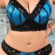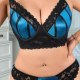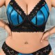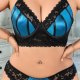 Teal Blue Satin and Black Lace Lingerie Set for Plus Size